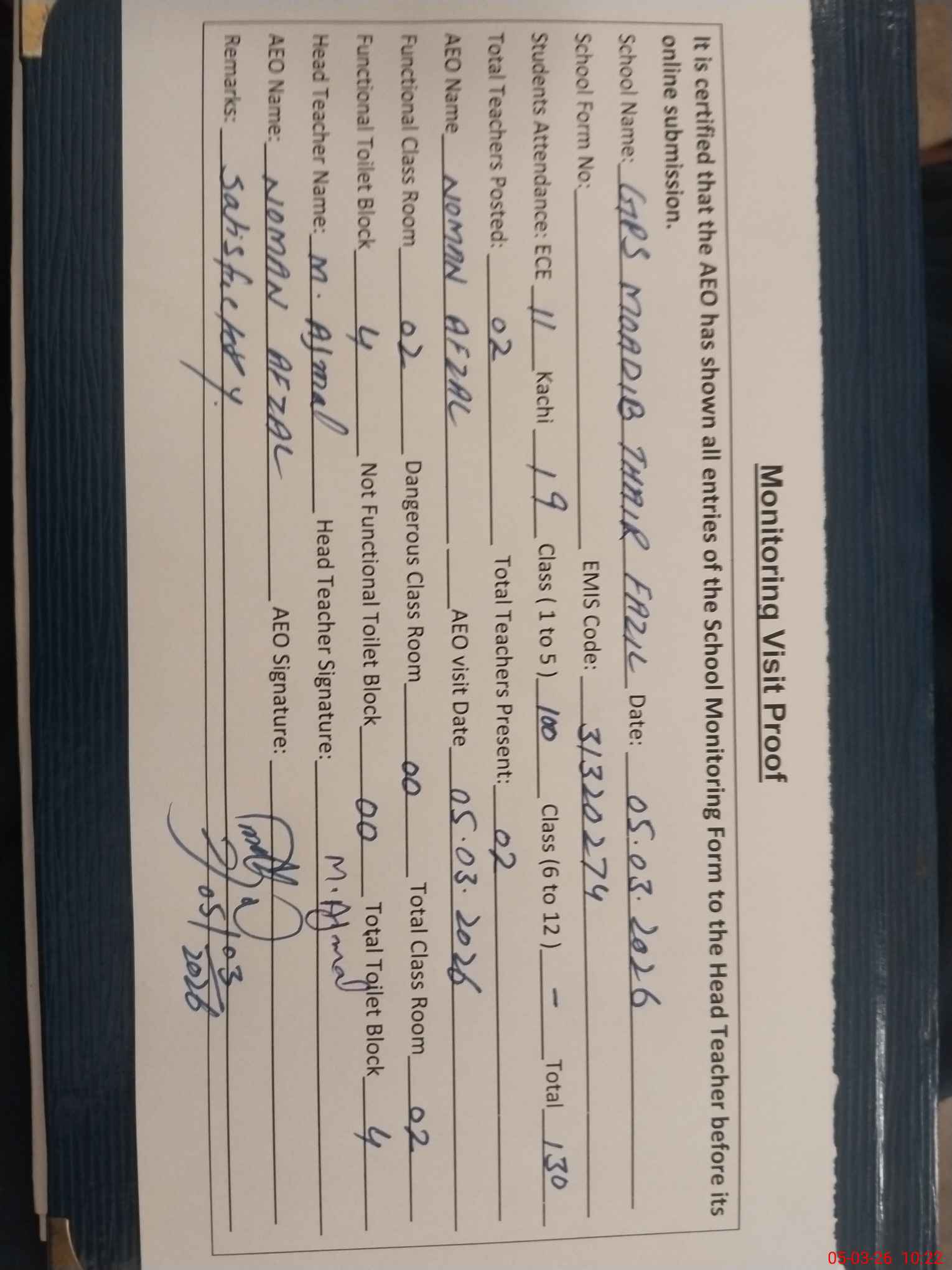 | EMIS Code: 31320274 | Name of School: GPS MOADIB THAIR FAZIL | |||