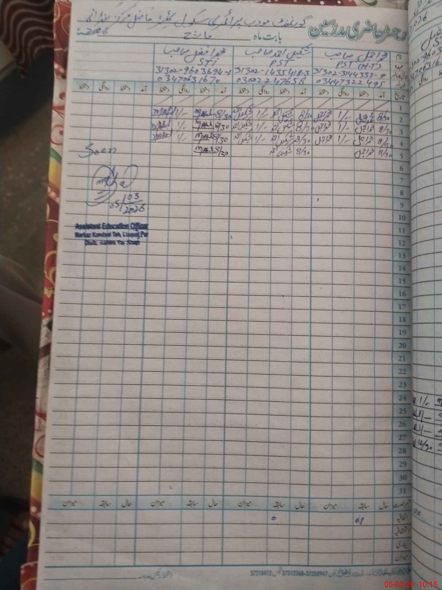 | Name: NO**** AH**** Designation: (School Headmaster's/Headmistress's) EST (OT) Phone/Cell Number: 03**** |