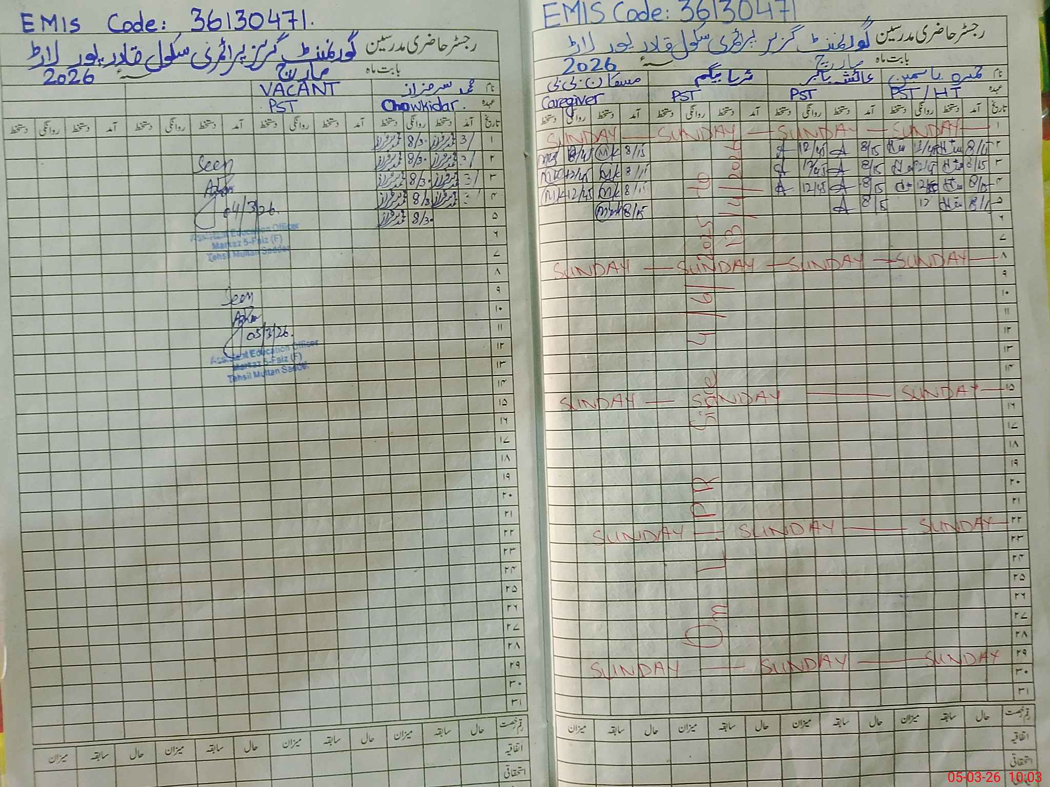| EMIS Code: 36130471 | Name of School: GGPS QADIR PUR LAR MULTAN | |||