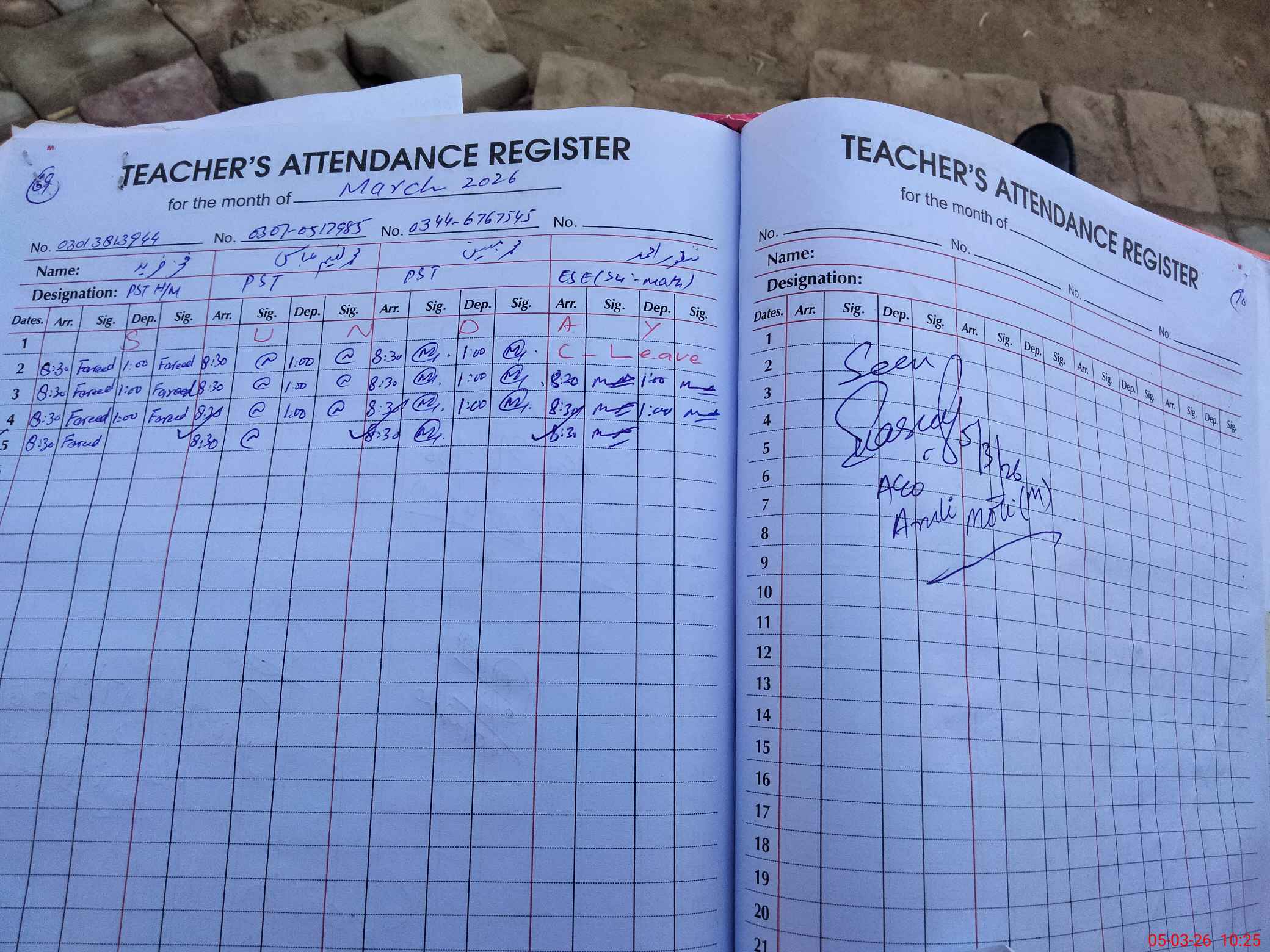 | Name: Mu**** Mo**** Designation: (School Headmaster's/Headmistress's) PST Phone/Cell Number: 03**** |