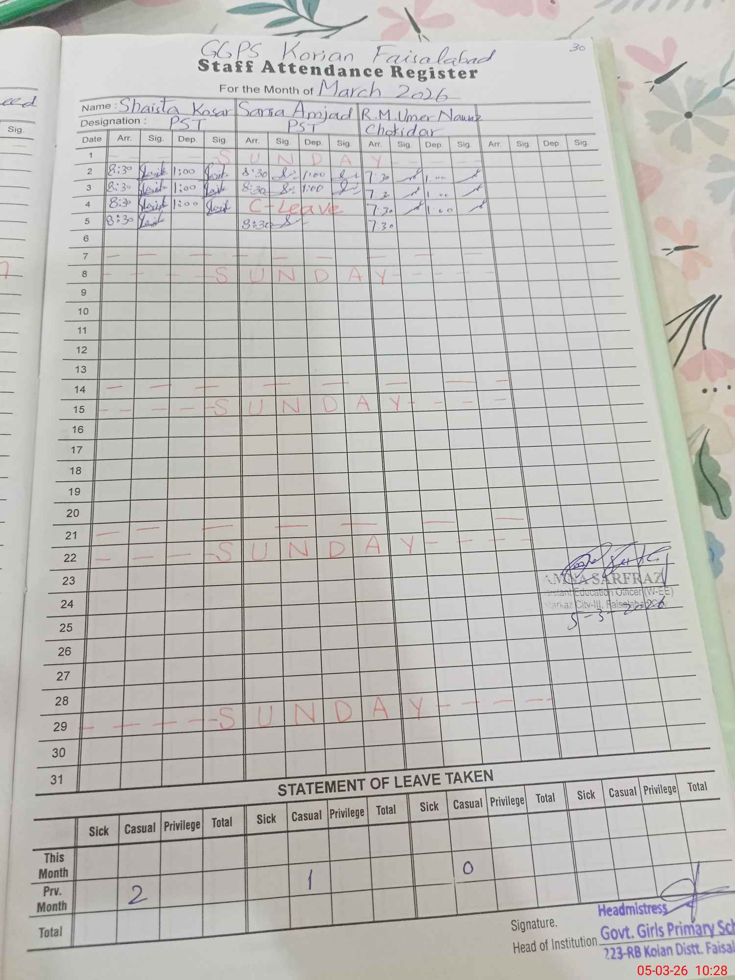 | EMIS Code: 33110123 | Name of School: GGPS KORIAN FAISALABAD | |||