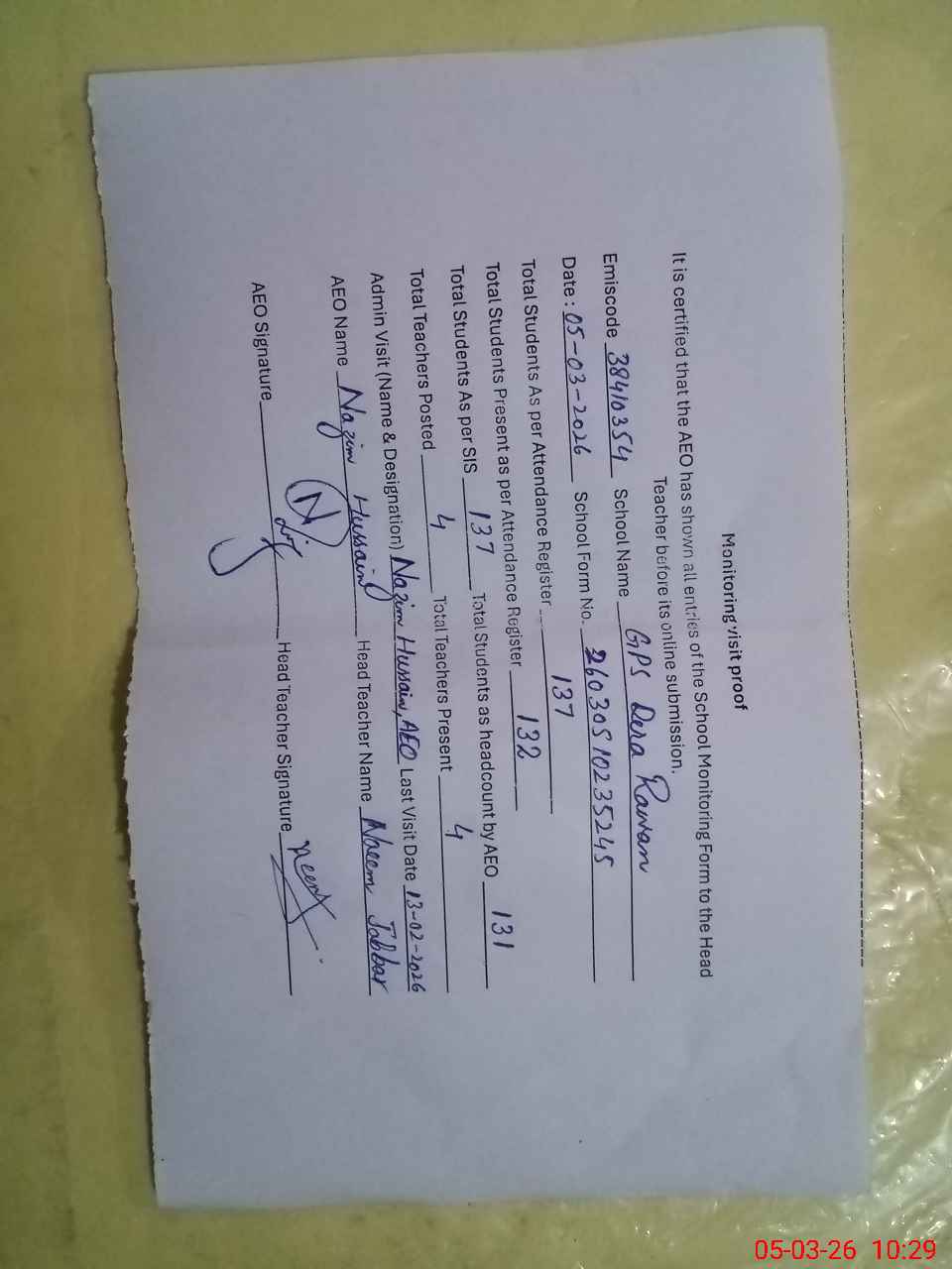 | EMIS Code: 38410354 | Name of School: GPS DERA RAWAN | |||