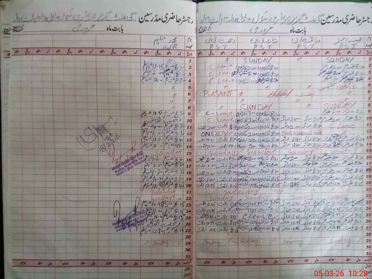 | CNIC | Full Name | Designation | R/C | Absence During Last Calender Month |