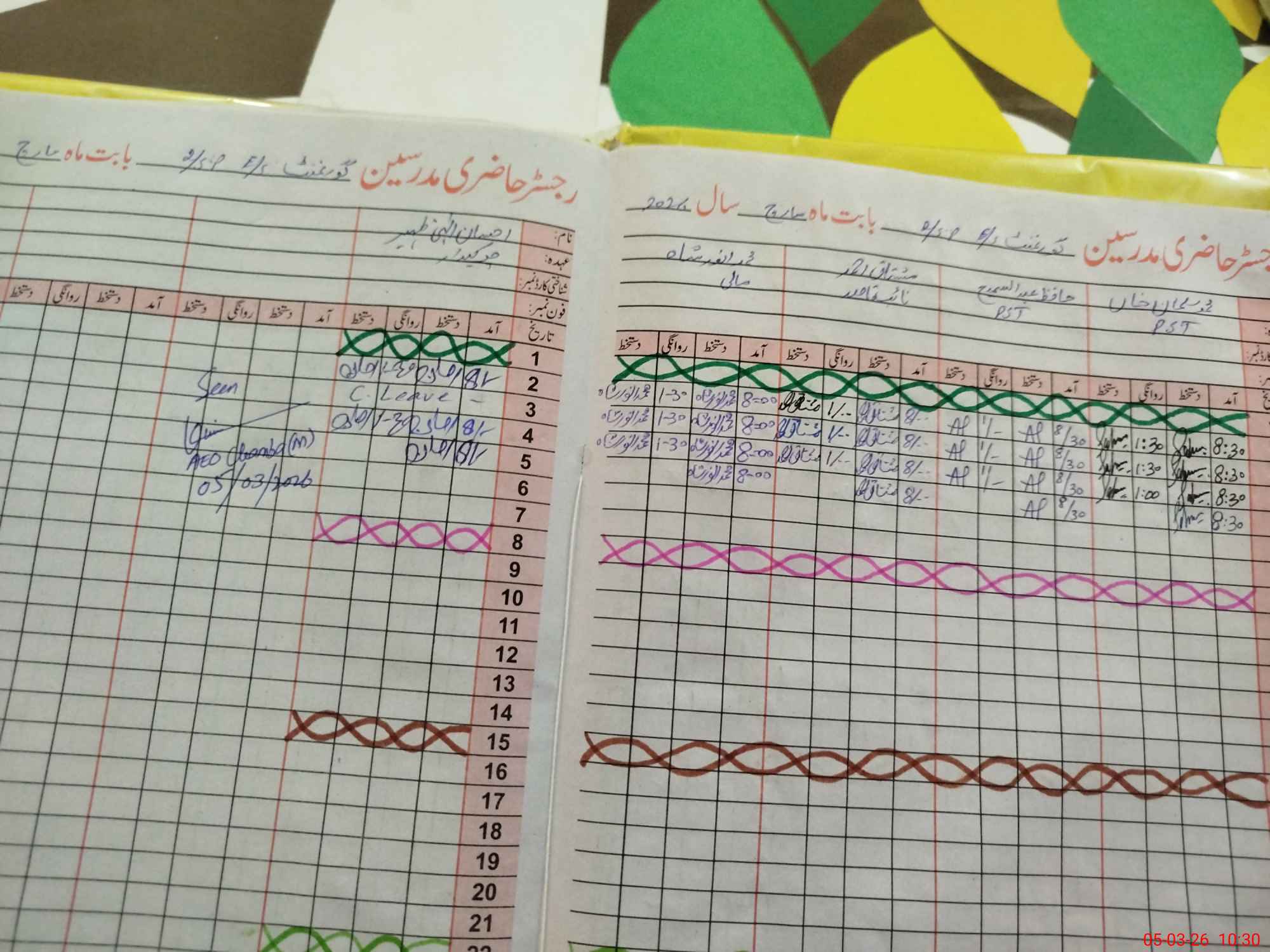 | CNIC | Full Name | Designation | R/C | Absence During Last Calender Month |