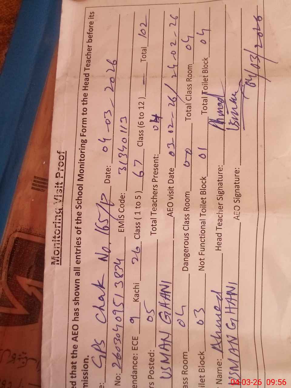 | EMIS Code: 31340113 | Name of School: GPS CHAK 165-P | |||