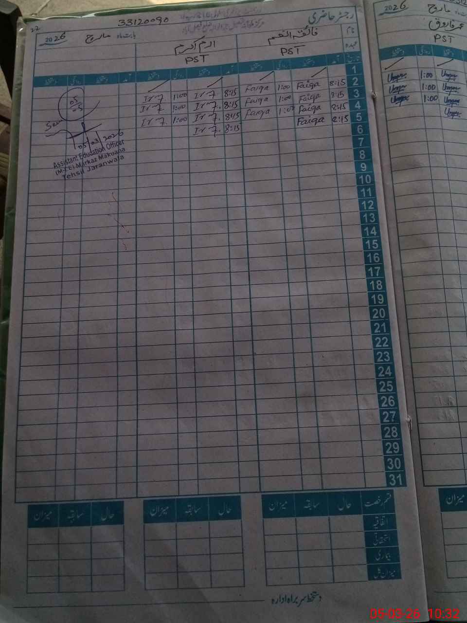 | Name: Un**** Ul**** Designation: (School Headmaster's/Headmistress's) PST/PTC/JV Phone/Cell Number: 03**** |