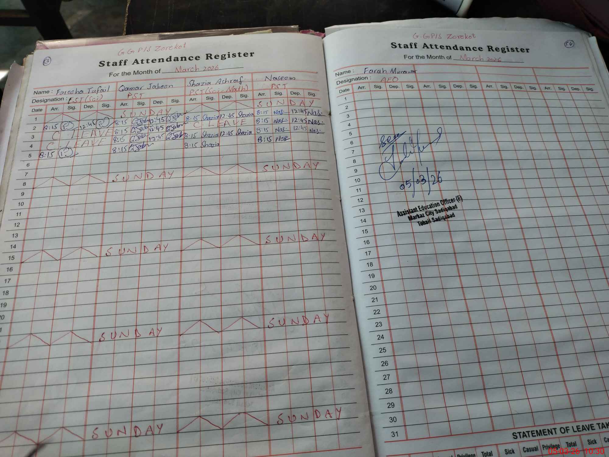 | Leave | Duty | Absent | Maternity | Medical | Ex- Pak |