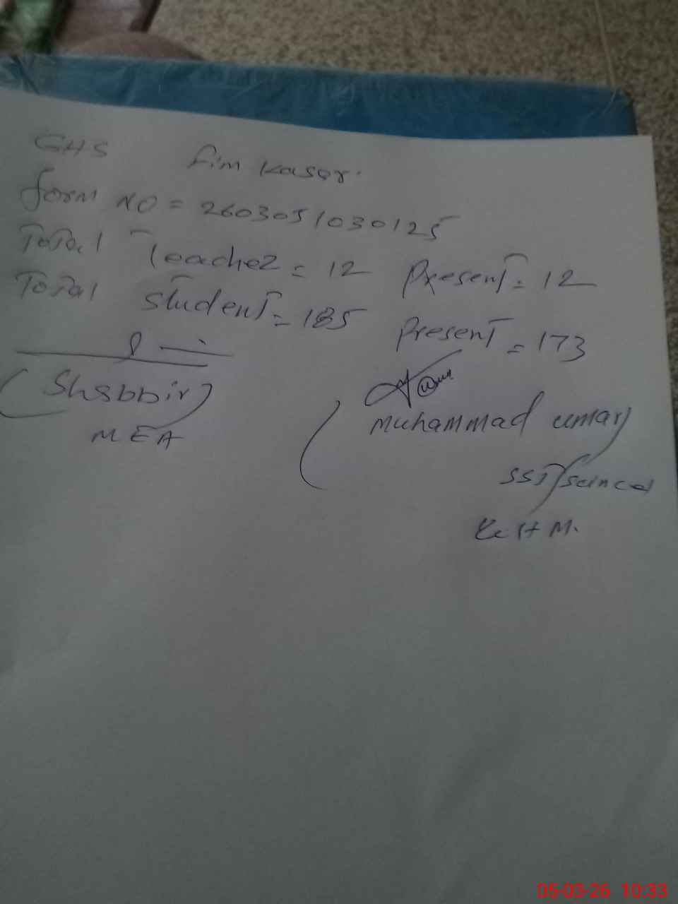| Name: Mu**** Um**** Designation: (School Headmaster's/Headmistress's) I/c HEADMASTER Phone/Cell Number: 03**** |