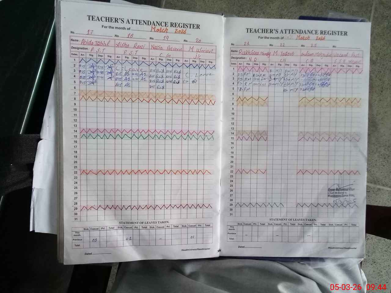| Leave | Duty | Absent | Maternity | Medical | Ex- Pak |
