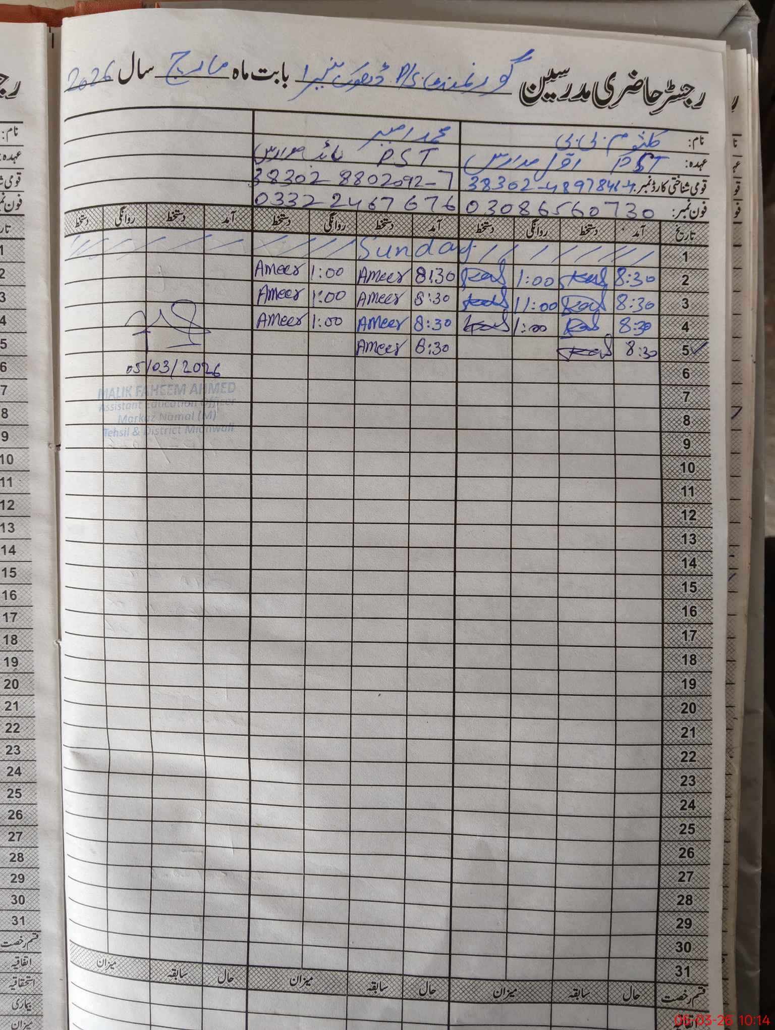 | Name: Mu**** Na**** Designation: (School Headmaster's/Headmistress's) Pst Phone/Cell Number: 03**** |