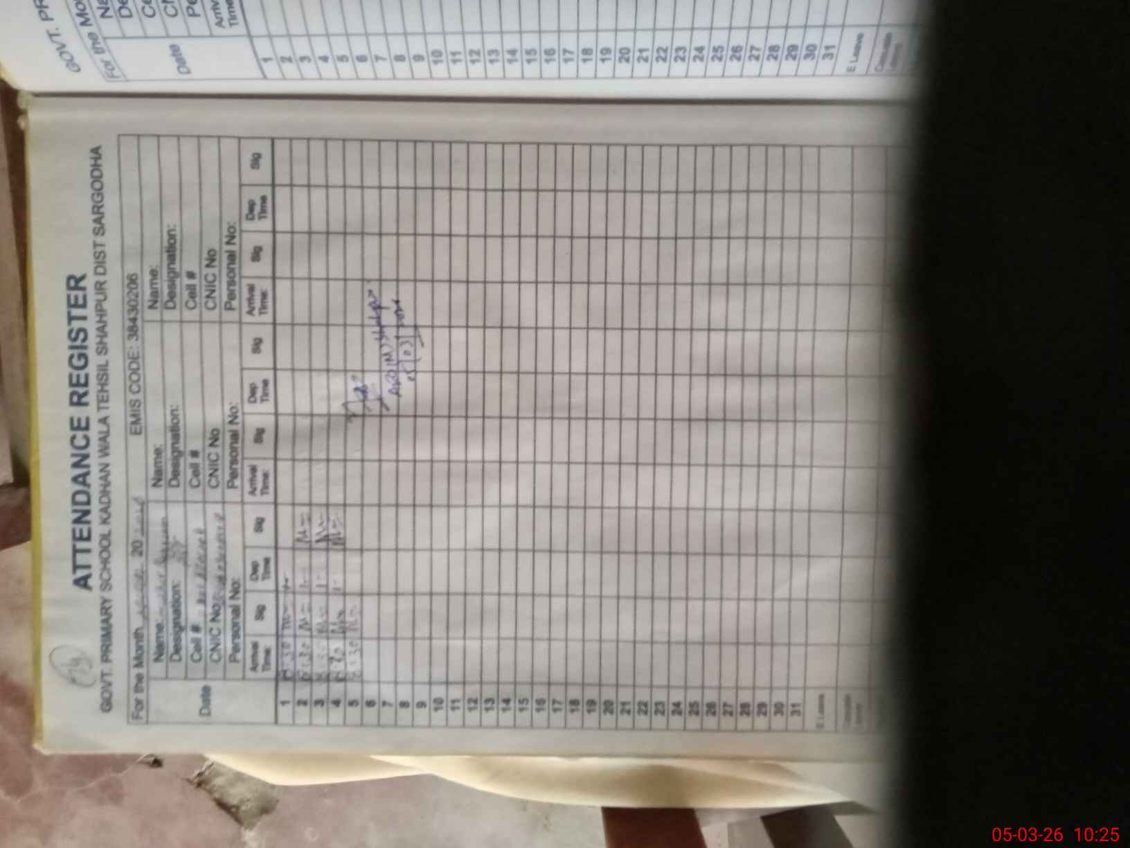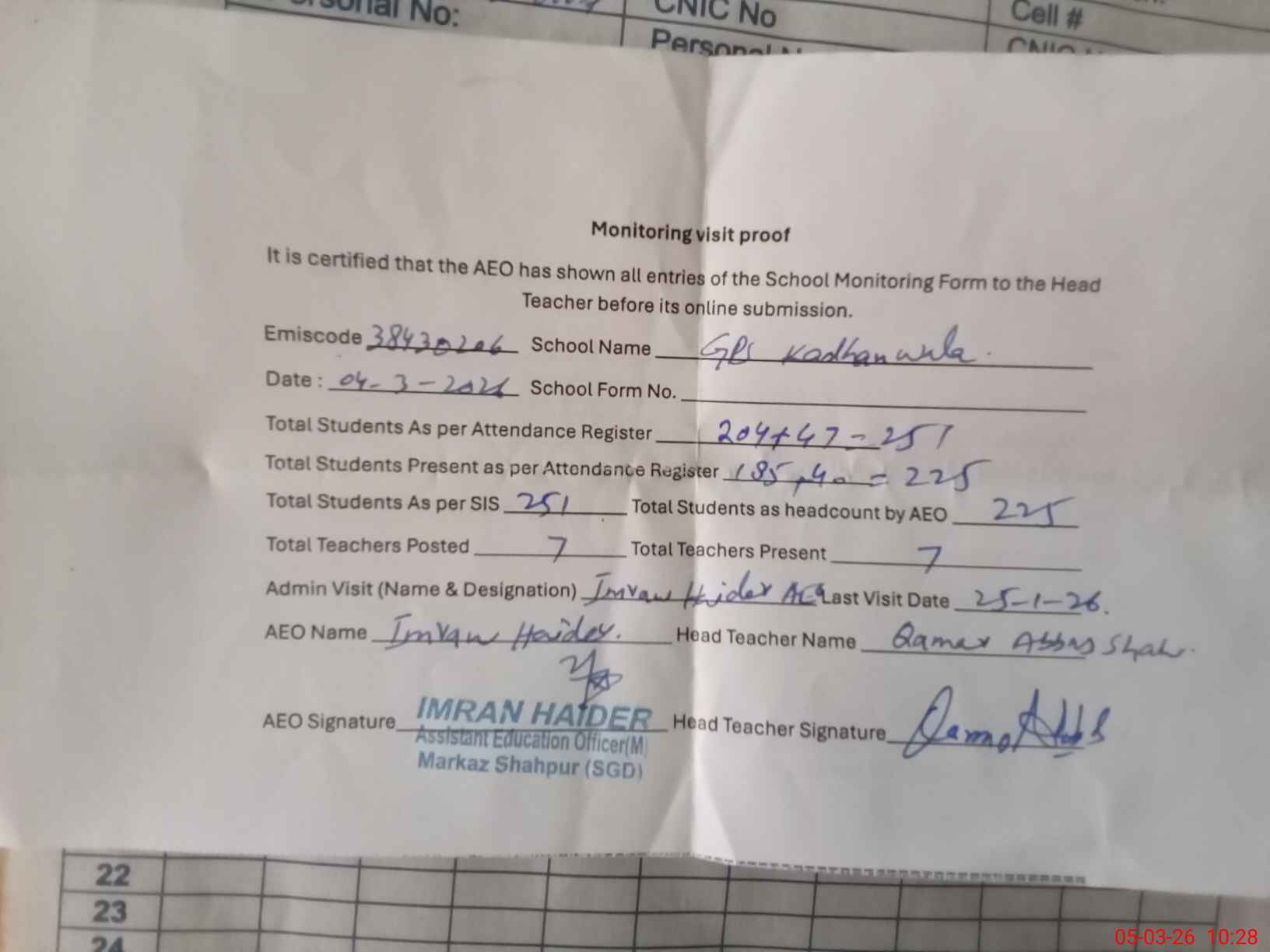 | Name: QA**** AB**** SH**** Designation: (School Headmaster's/Headmistress's) PST Phone/Cell Number: 03**** |