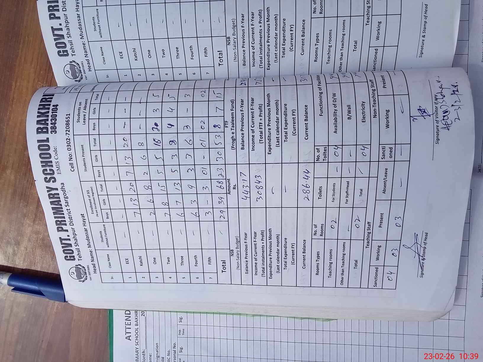 | Attendance Register | Head Teacher | MEA with School | Visit Proof |
