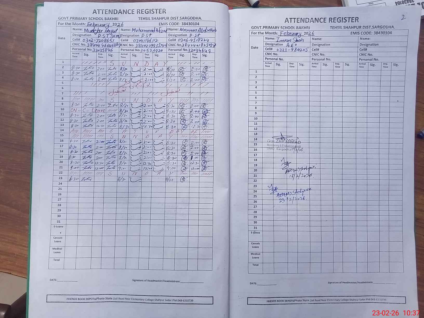 | Name: MU**** HA**** Designation: (School Headmaster's/Headmistress's) PST Phone/Cell Number: 03**** |