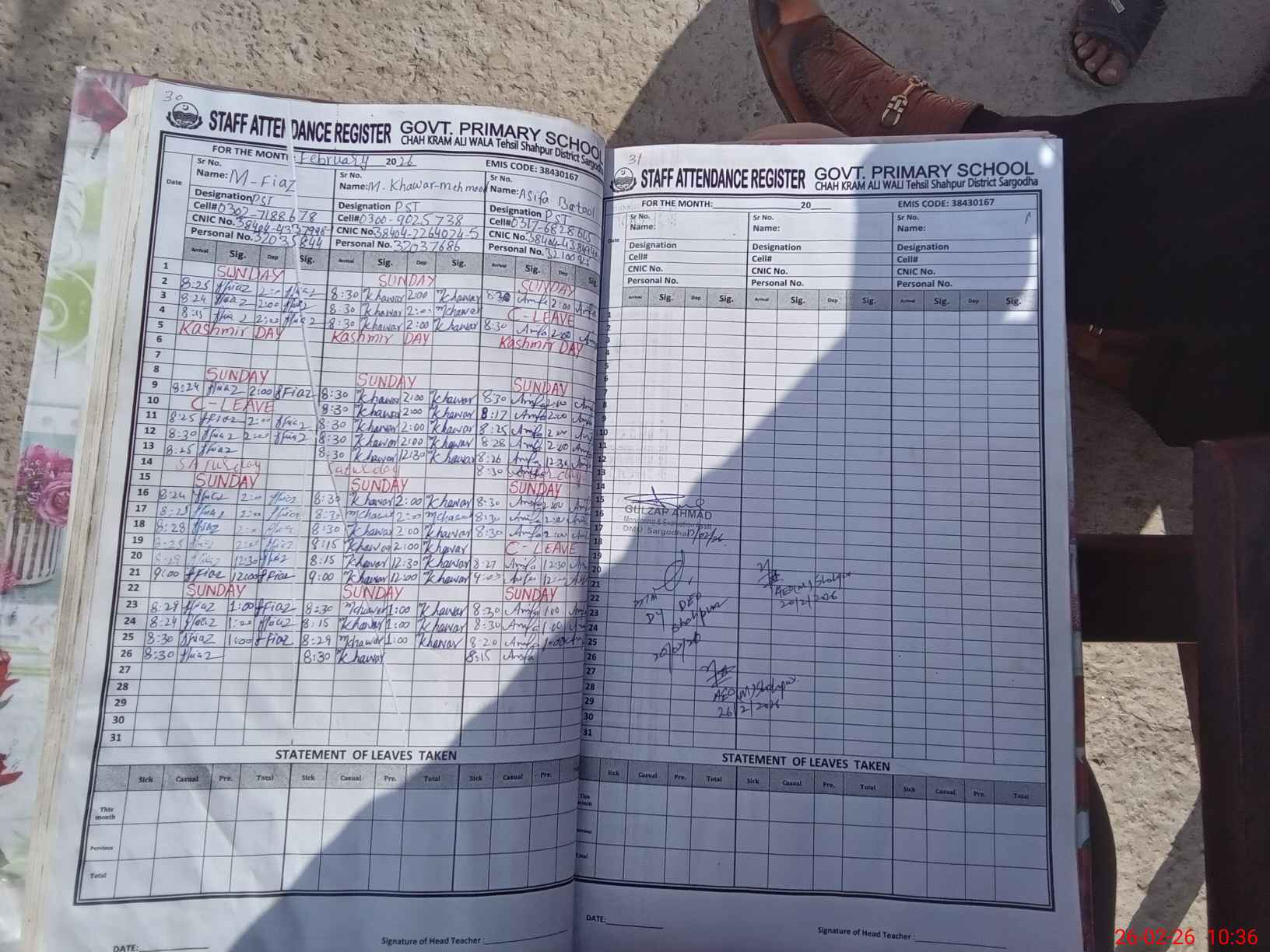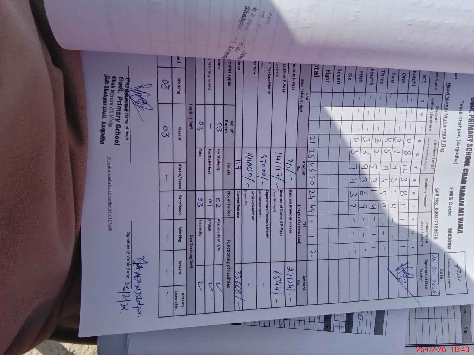 | Name: MU**** FI**** Designation: (School Headmaster's/Headmistress's) PST Phone/Cell Number: 03**** |
