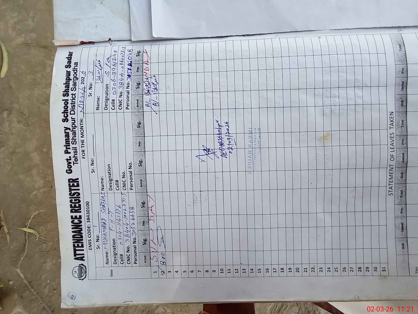| Name: NA**** HU**** SH**** Designation: (School Headmaster's/Headmistress's) PST Phone/Cell Number: 03**** |
