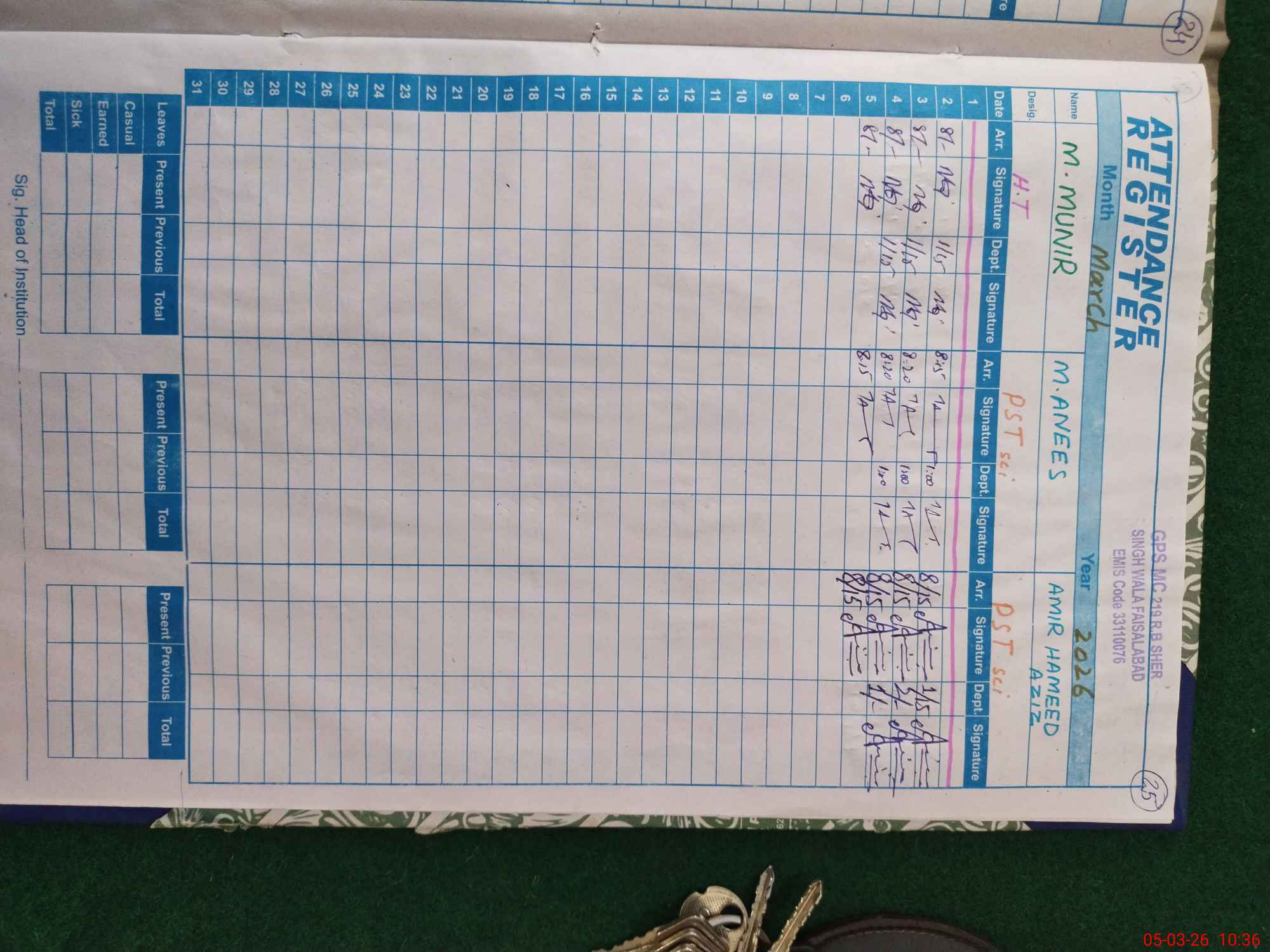 | Name: M.MU**** Designation: (School Headmaster's/Headmistress's) PST/PTC/JV Phone/Cell Number: 03**** |