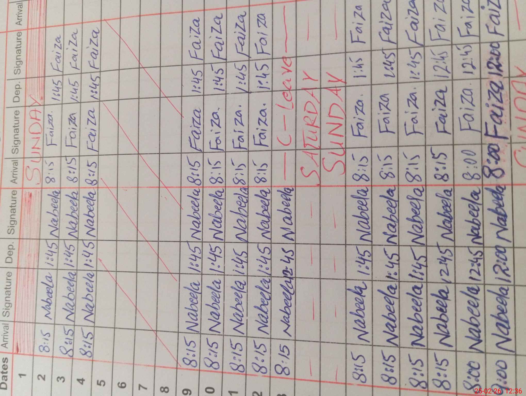 | Leave | Duty | Absent | Maternity | Medical | Ex- Pak |
