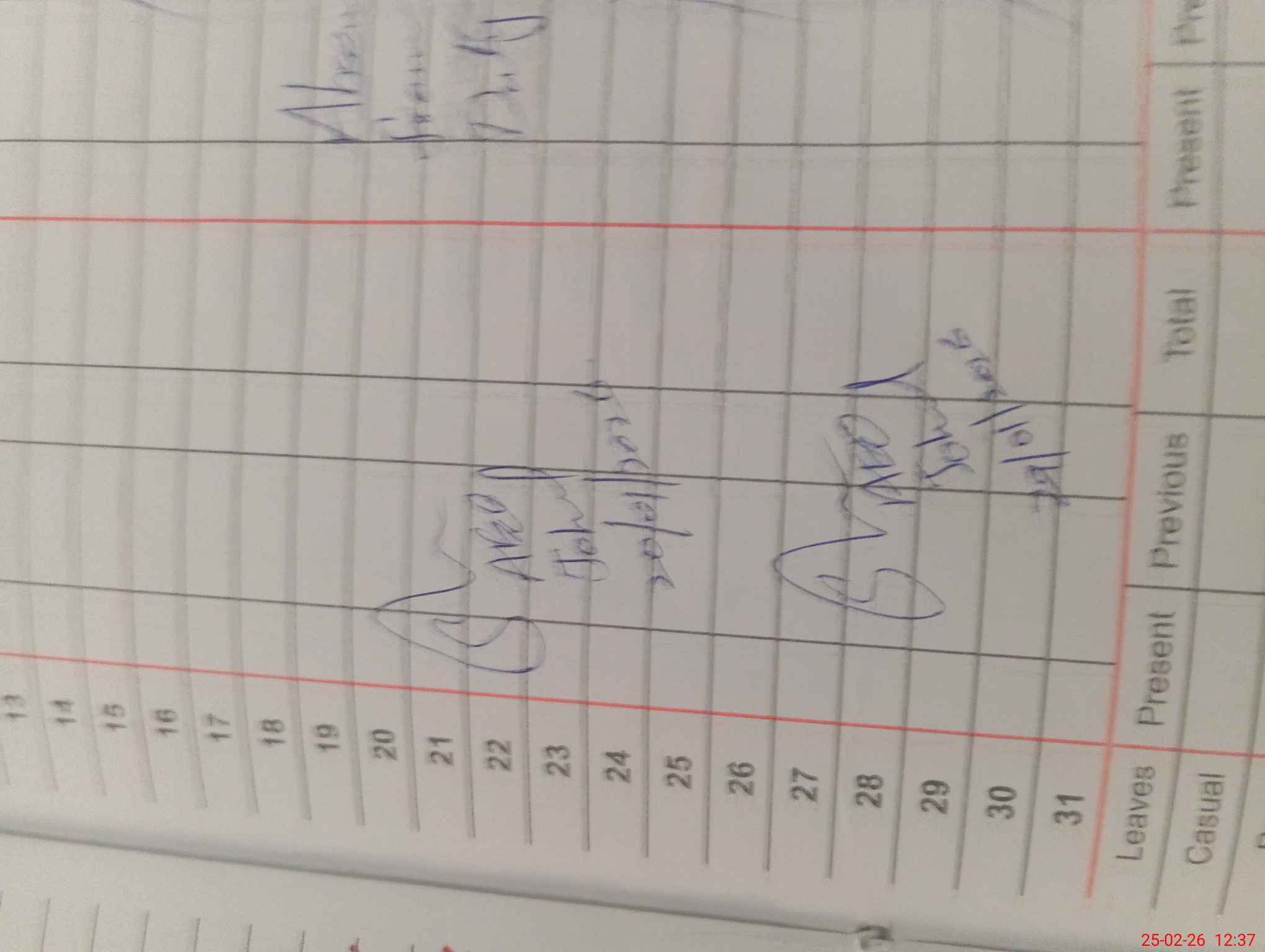 Leave Type | Remarks for today (Leave,Training, Exam,Absent,Late, Other duty) |