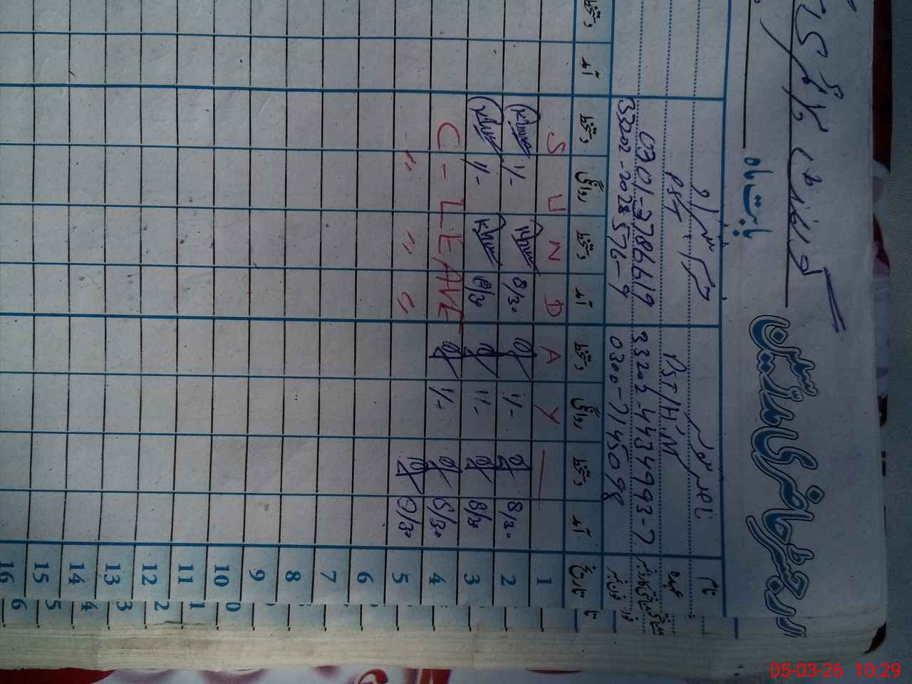 | CNIC | Full Name | Designation | R/C | Absence During Last Calender Month |