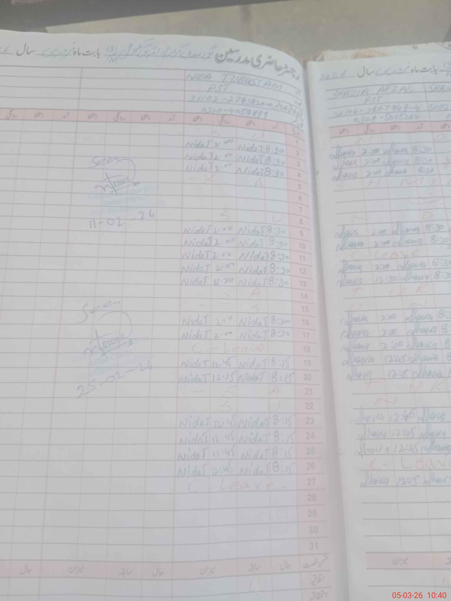 | Name: Sh**** Af**** Designation: (School Headmaster's/Headmistress's) PST Phone/Cell Number: 03**** |