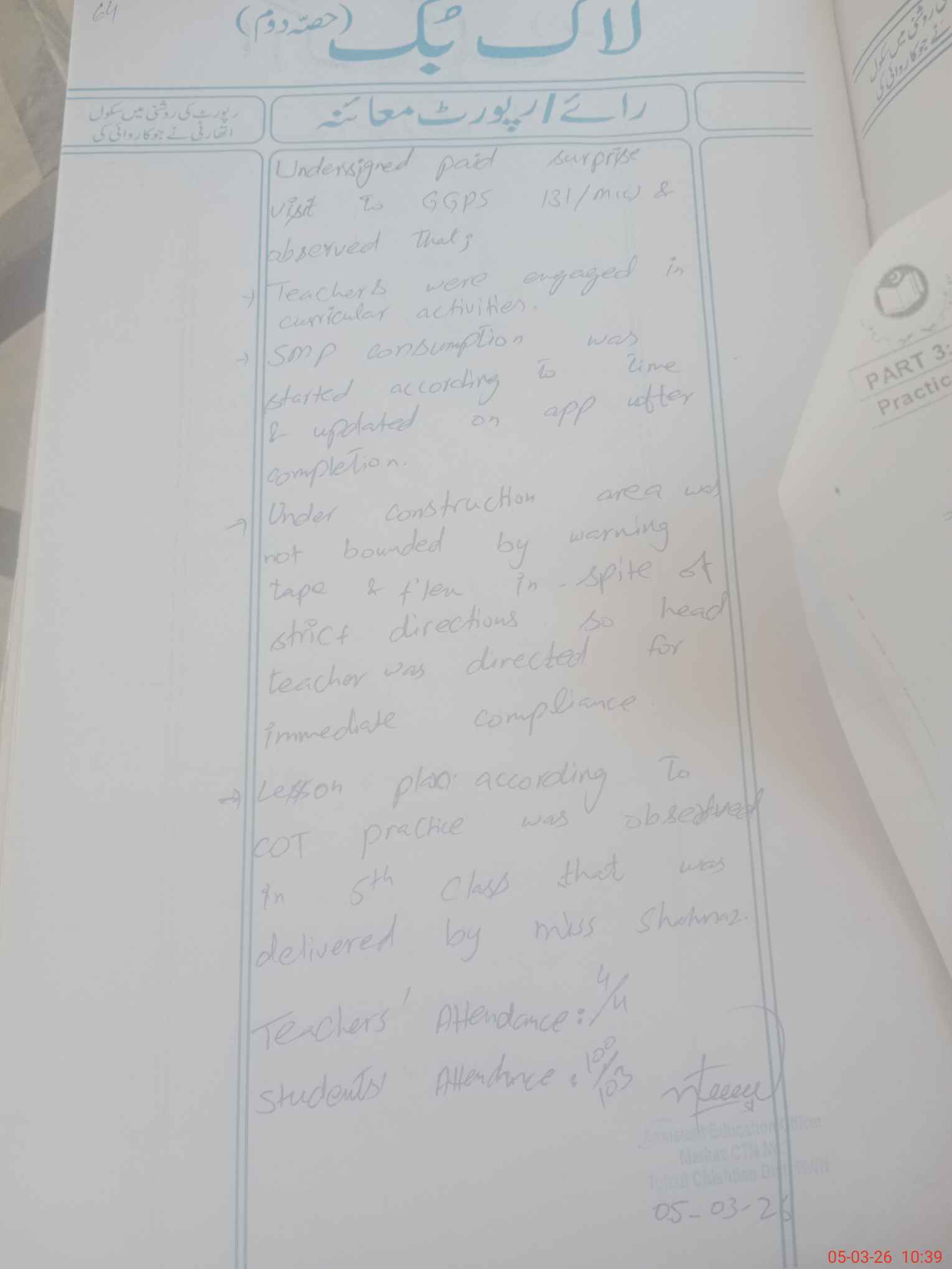 | Certified that this School was Inspected by the Undersigned MEA/DMO Today and the Information Stated Above is as Per Record. | |||||