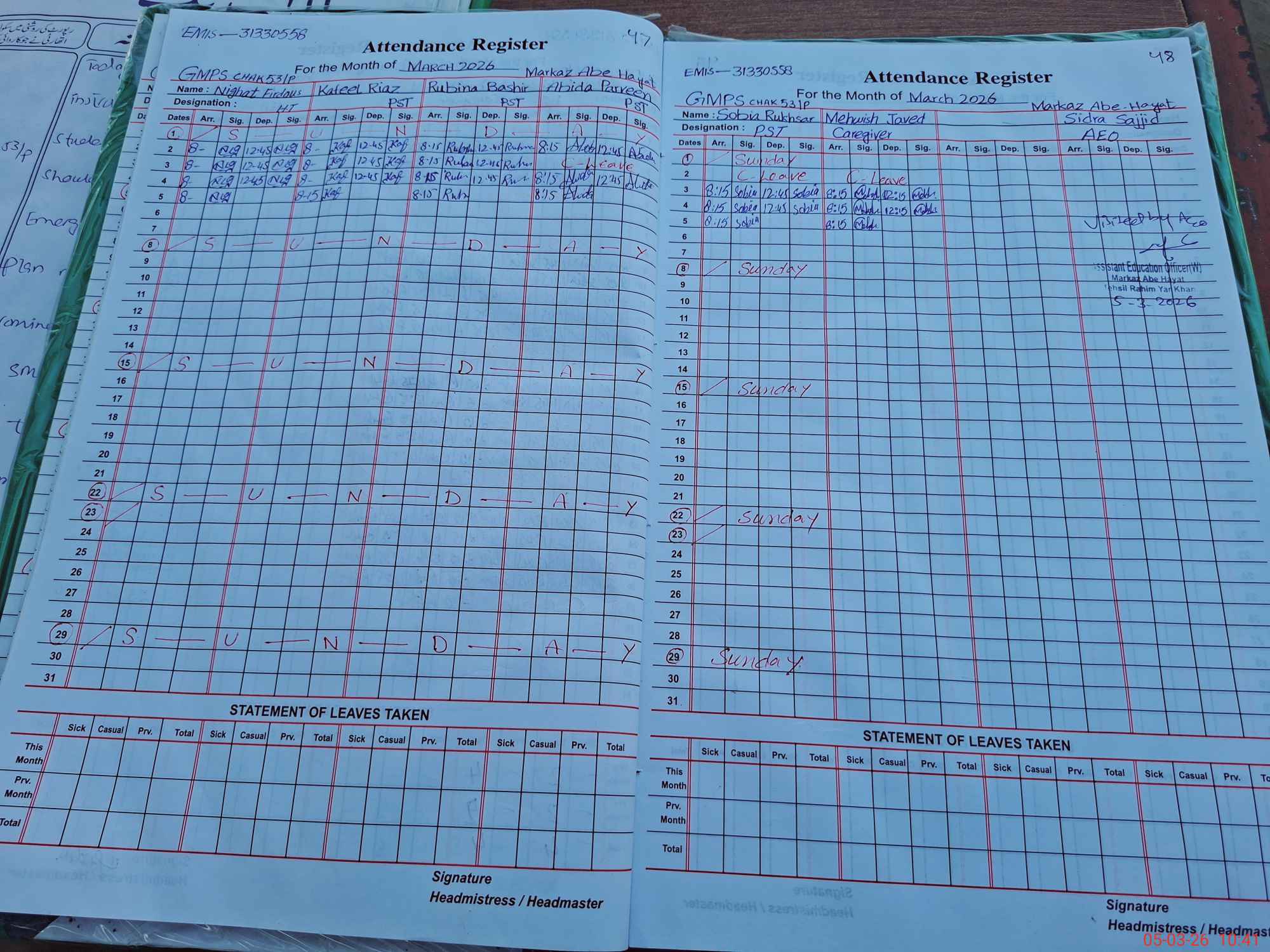| Attendance Register | Head Teacher | MEA with School | Visit Proof |