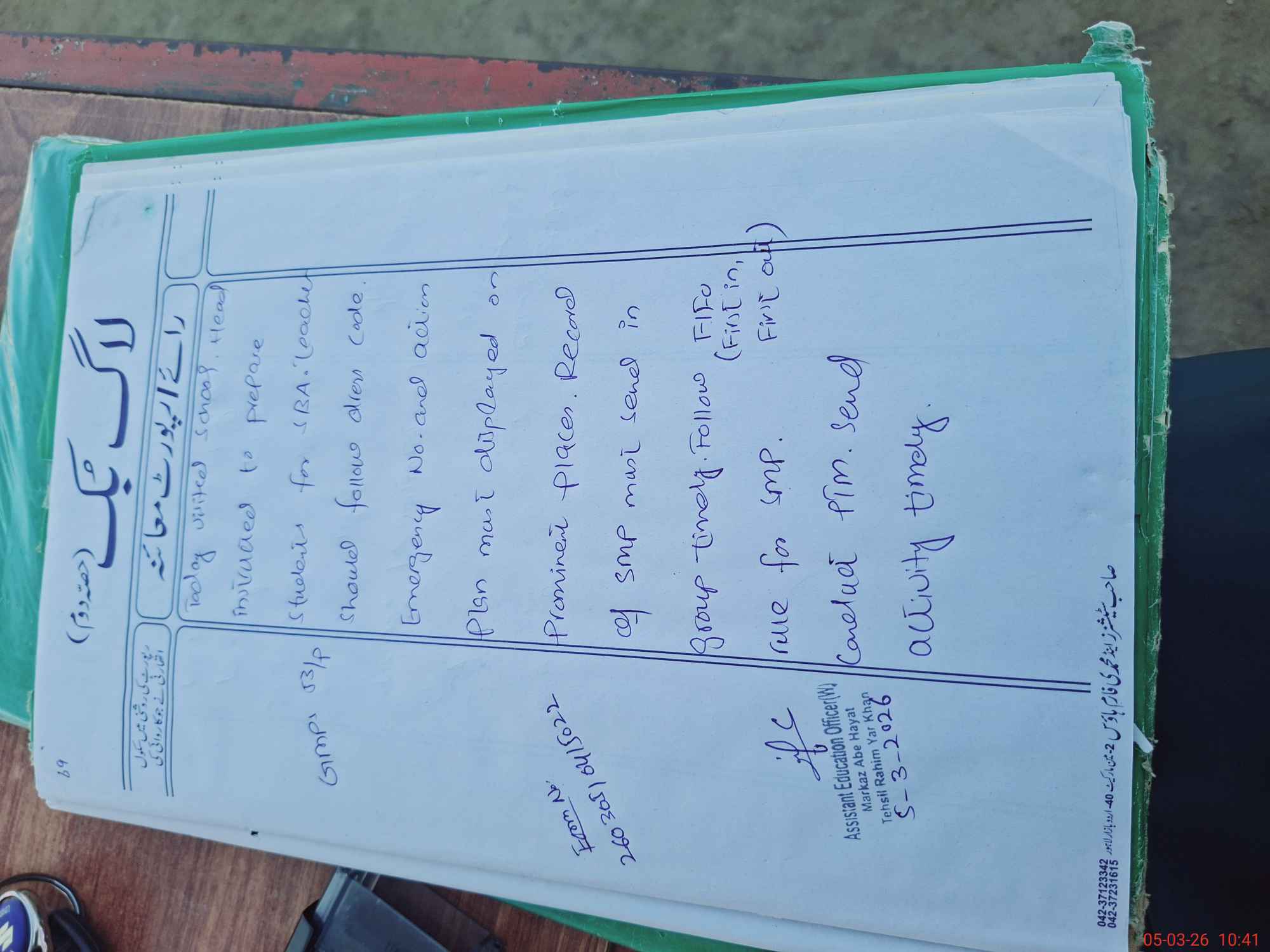 | Name of AEO: | AEO Contact No.: | MEA Phone#: 03**** | ||