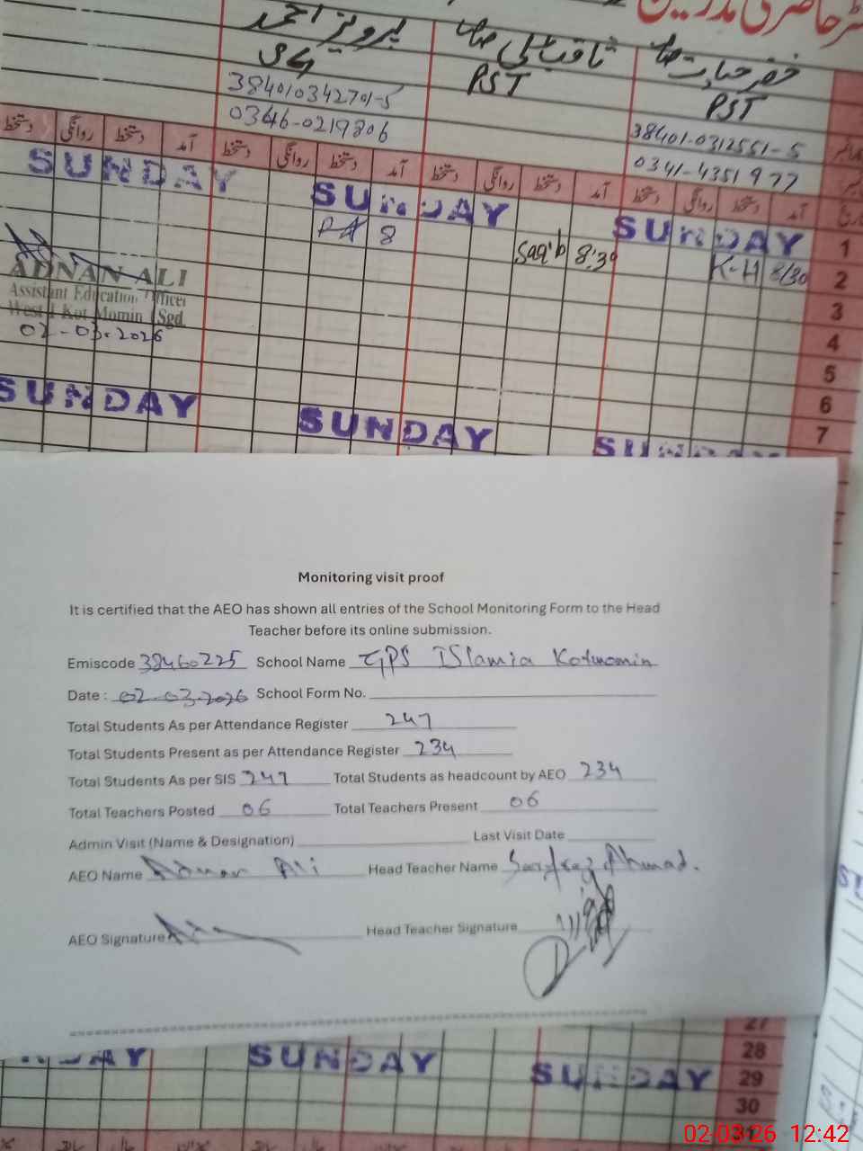| EMIS Code: 38460225 | Name of School: GPS ISLAMIA KOT MOMIN | |||