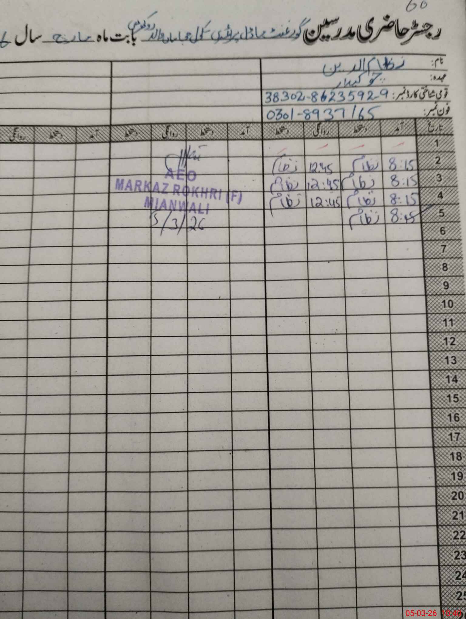| District: MIANWALI | Tehsil: MIANWALI | Markaz: ROKHRI-FEMALE | Level: Primary | |