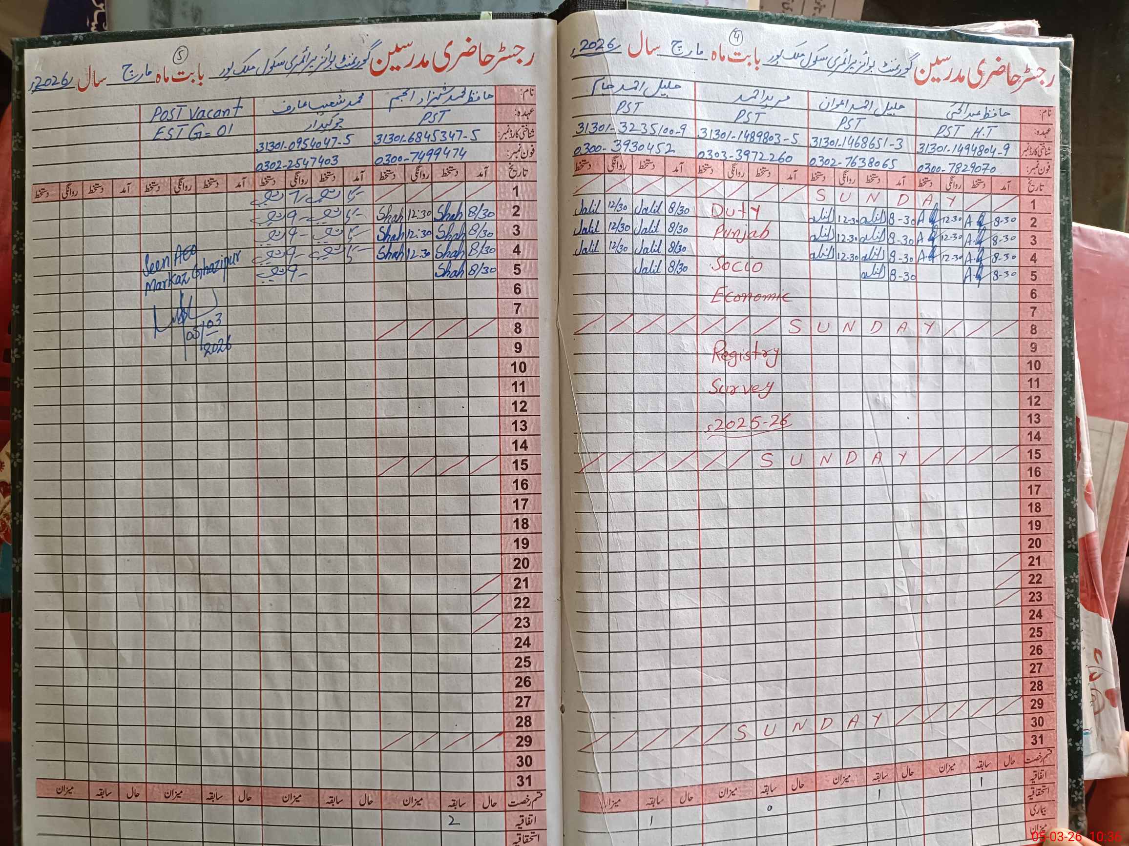 | Name: Ab**** Hy**** Designation: (School Headmaster's/Headmistress's) PST Phone/Cell Number: 03**** |
