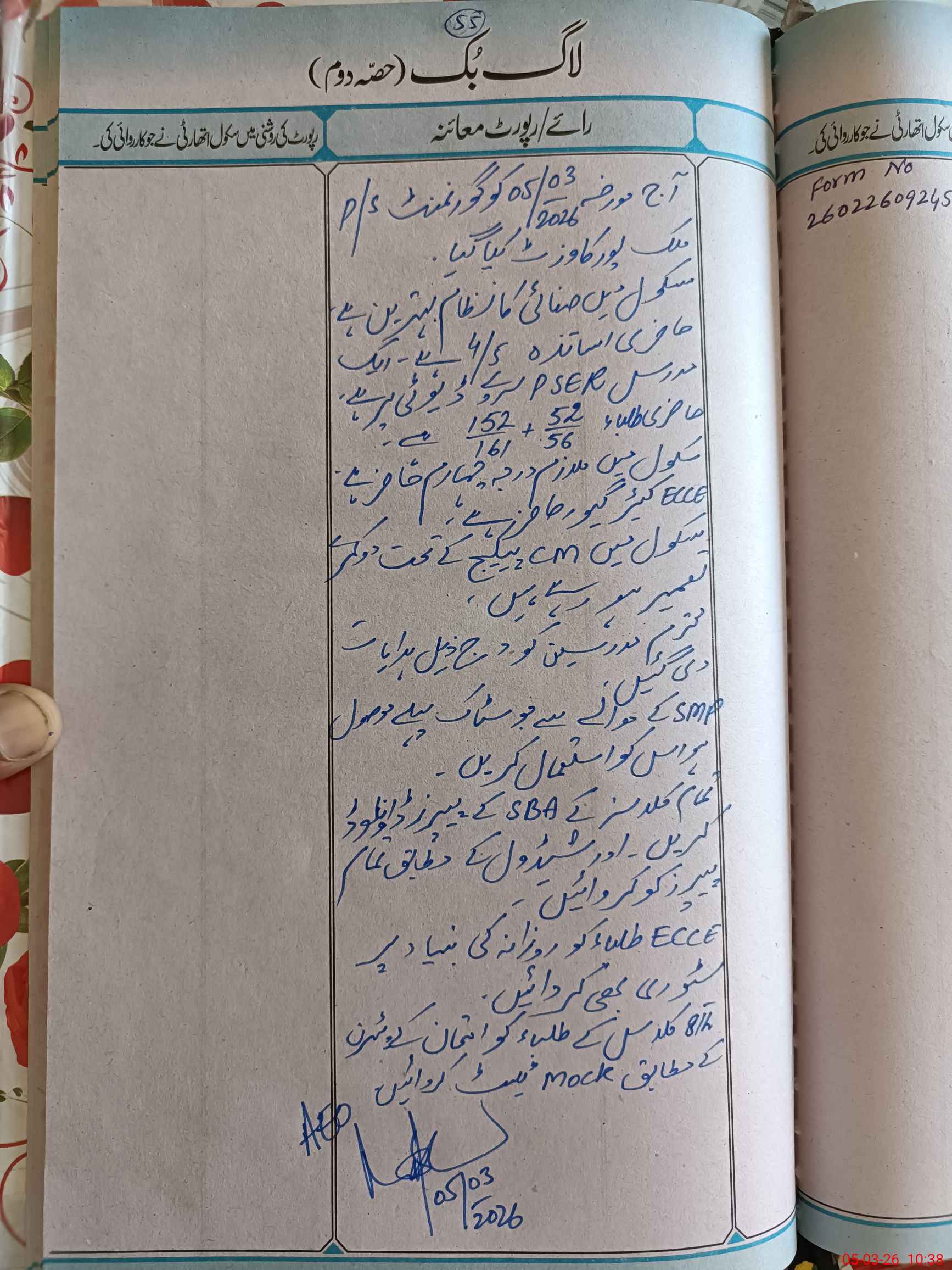 | Certified that this School was Inspected by the Undersigned MEA/DMO Today and the Information Stated Above is as Per Record. | |||||