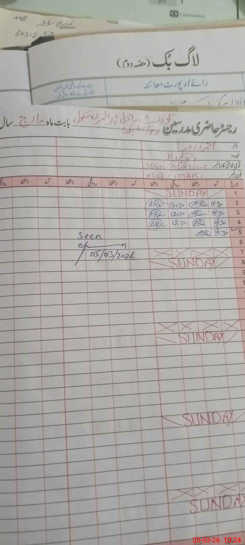 | Name: AM**** MA**** Designation: (School Headmaster's/Headmistress's) PST Phone/Cell Number: 03**** |