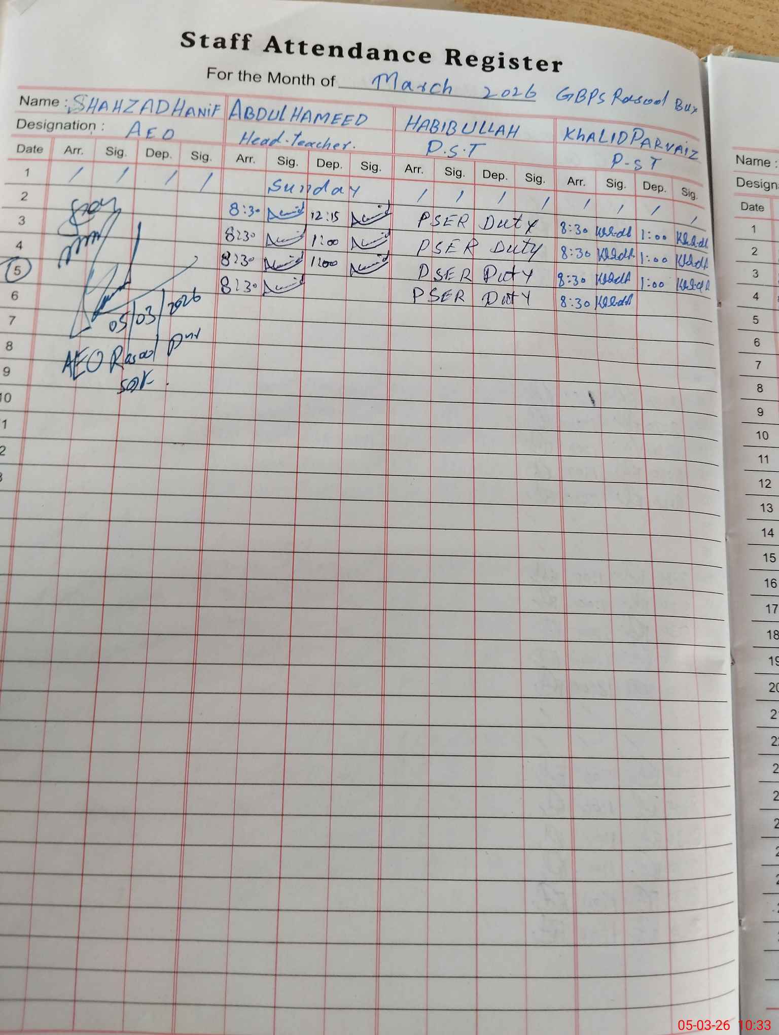 | Name: AB**** HA**** Designation: (School Headmaster's/Headmistress's) PST Phone/Cell Number: 03**** |