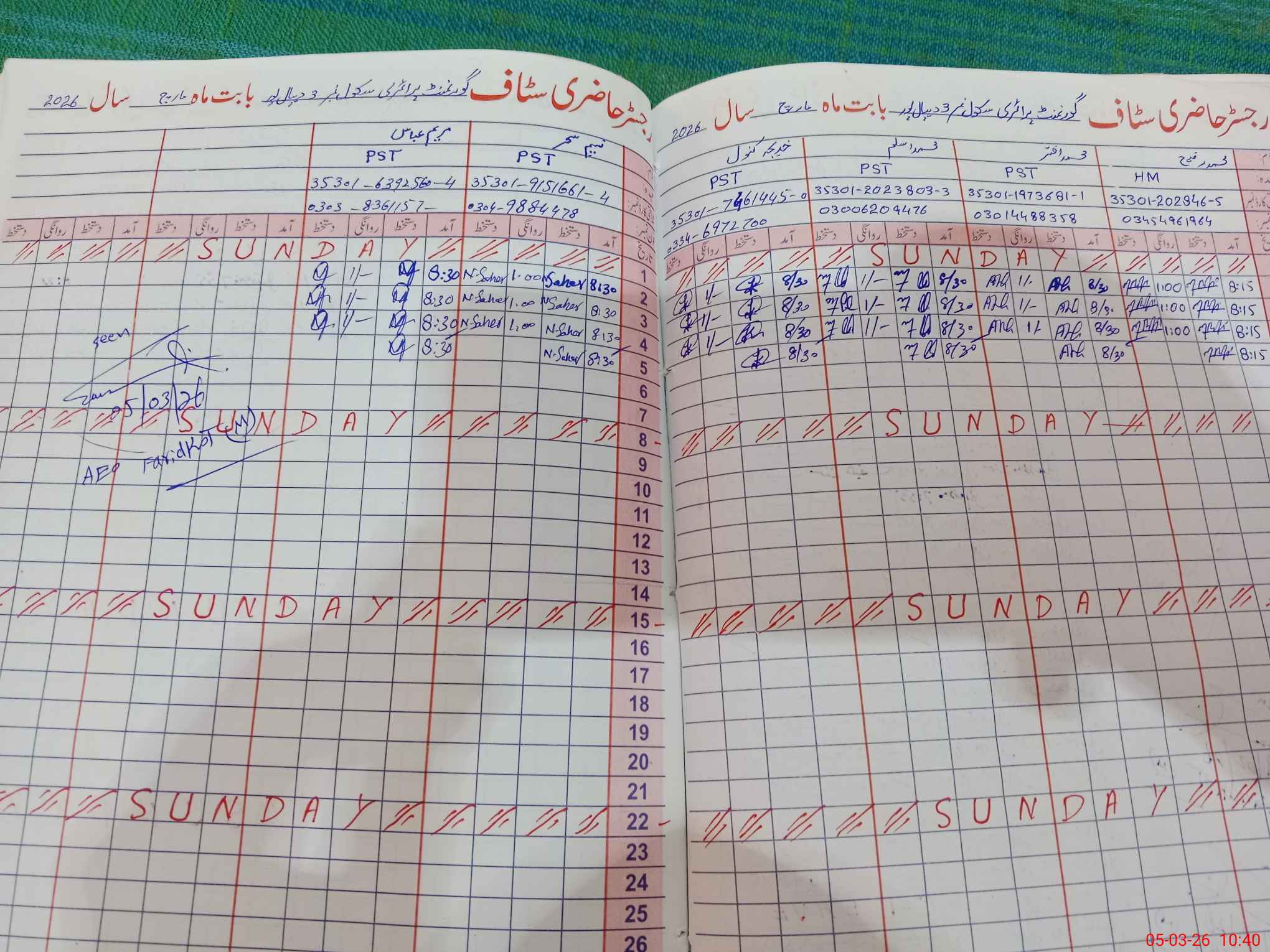 | Name: MU**** RA**** Designation: (School Headmaster's/Headmistress's) PST Phone/Cell Number: 03**** |