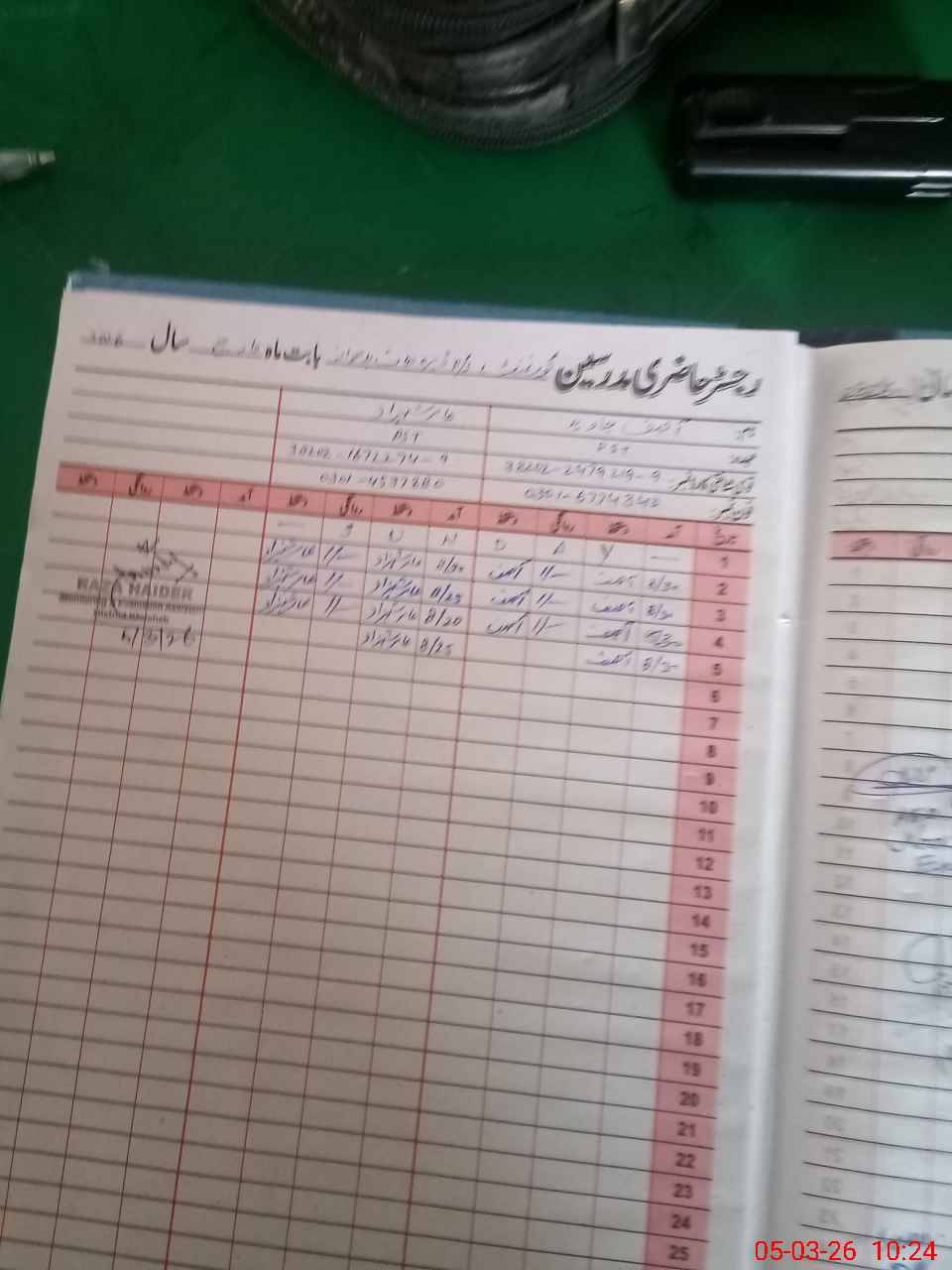 | CNIC | Full Name | Designation | R/C | Absence During Last Calender Month |