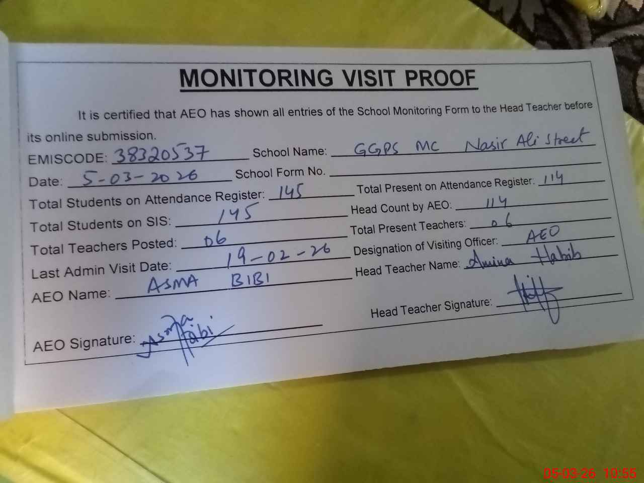 | EMIS Code: 38320537 | Name of School: GGPS MC NASIR ALI STREET | |||
