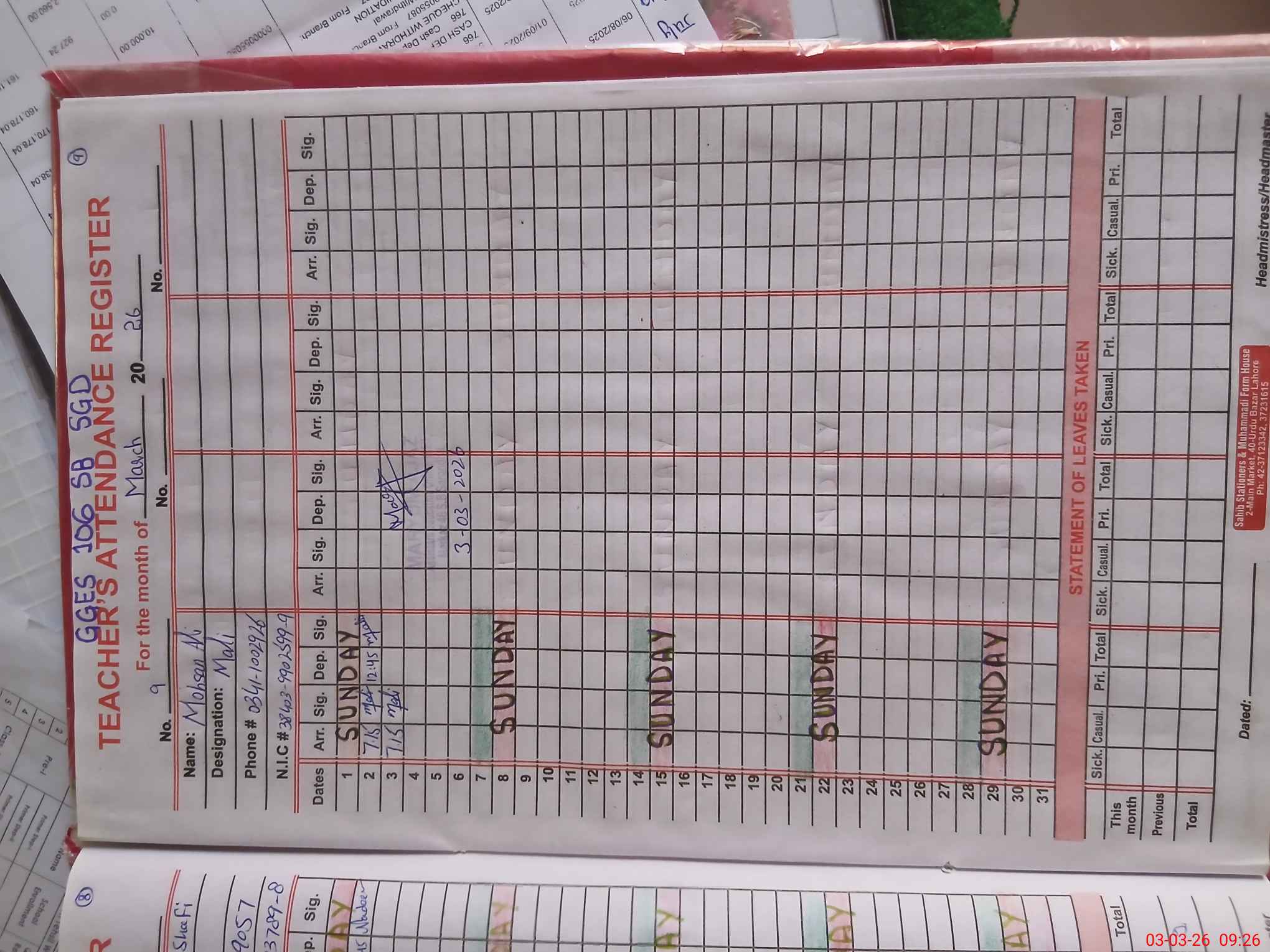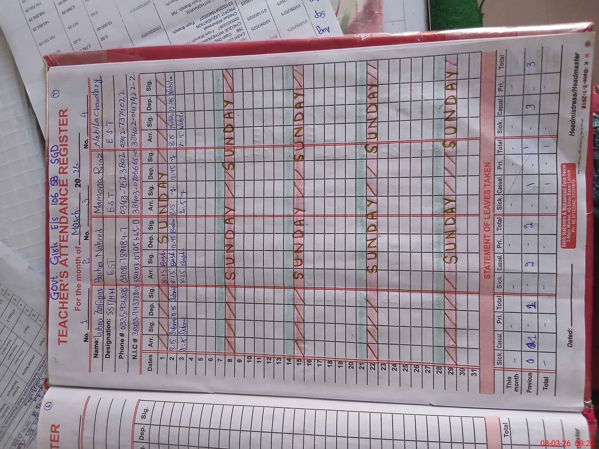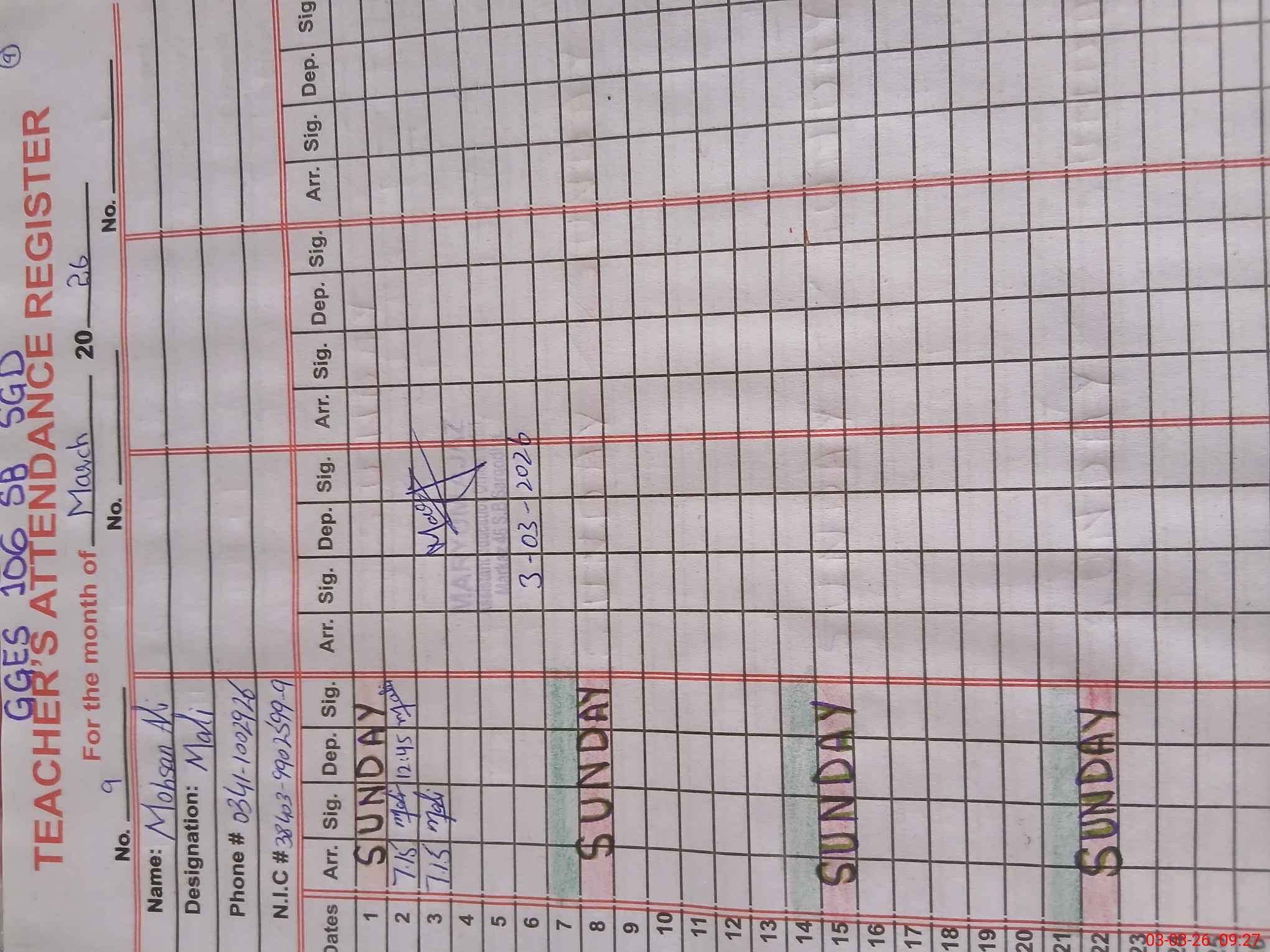 | Name: LU**** ZU**** Designation: (School Headmaster's/Headmistress's) SST Phone/Cell Number: 03**** |