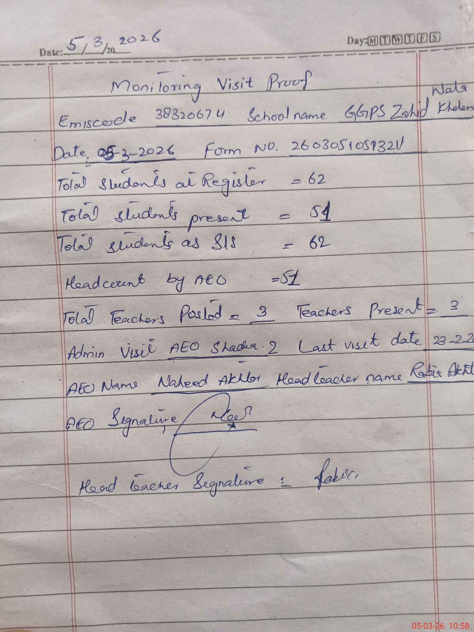| EMIS Code: 38320674 | Name of School: GGPS ZAHID KHELAN WALA | |||