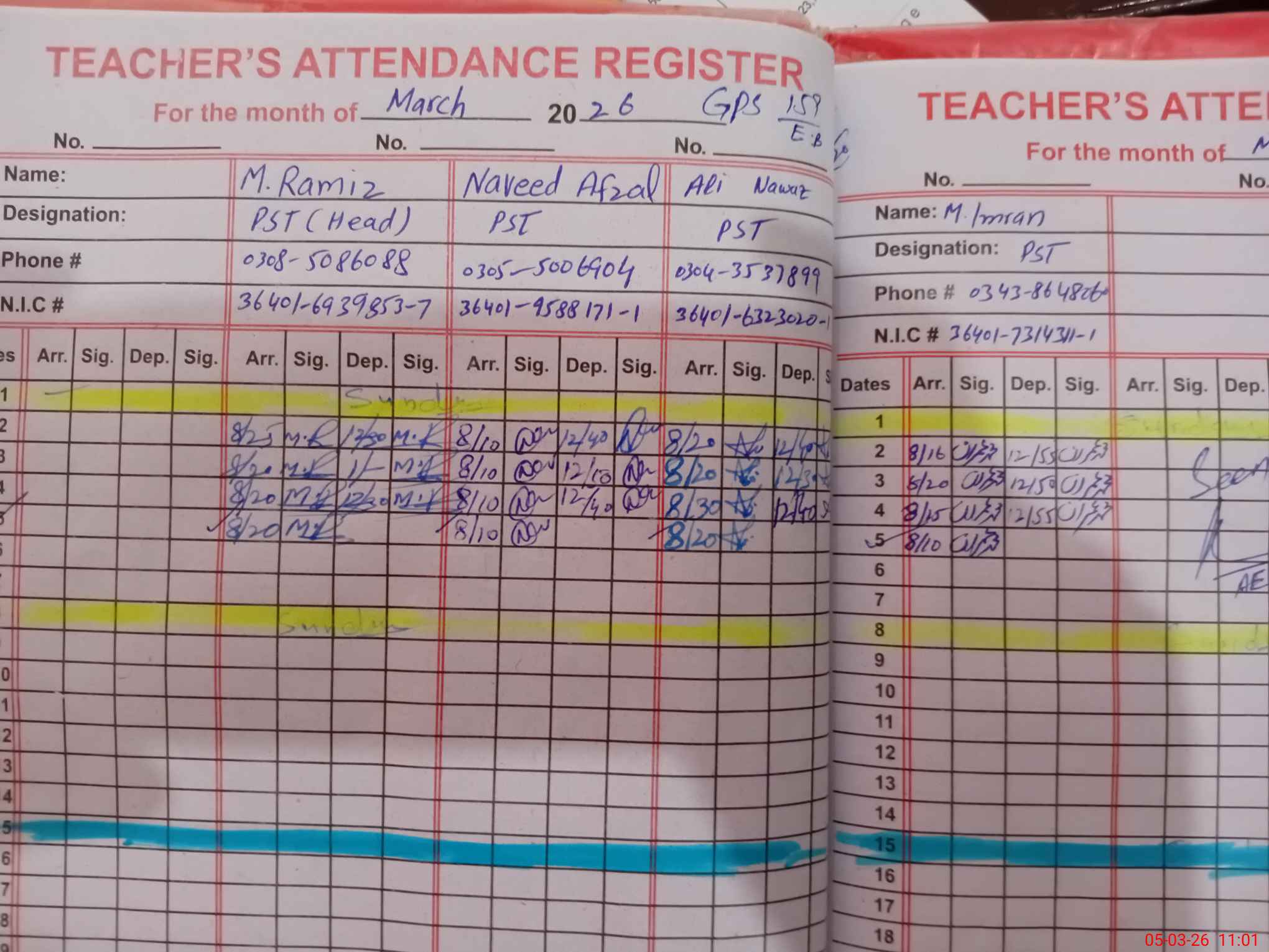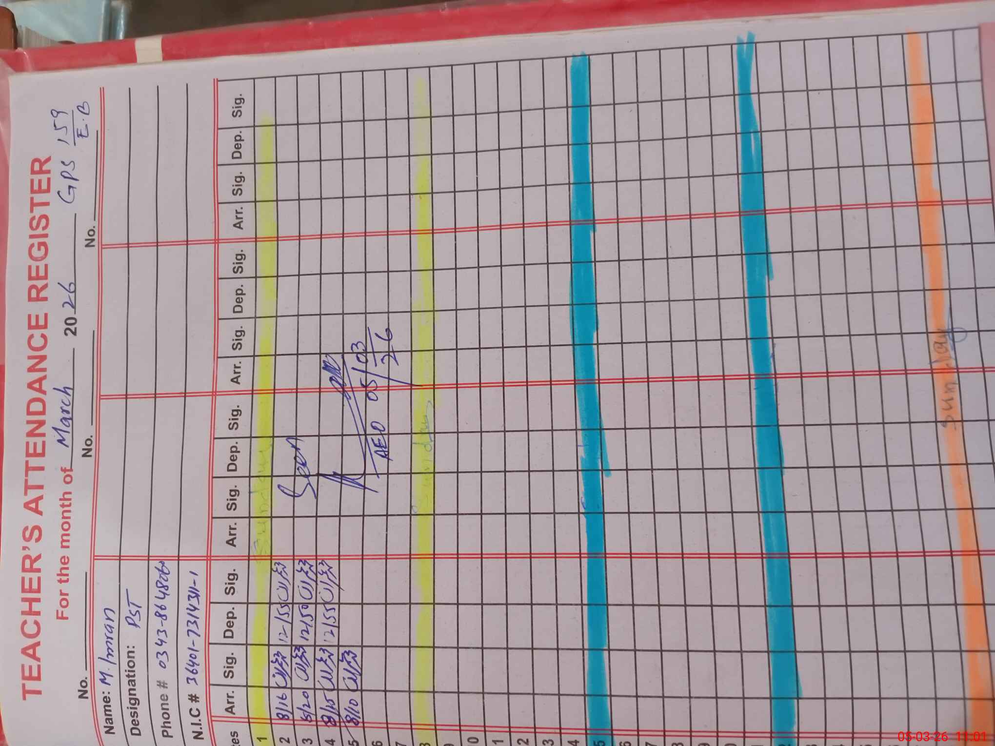 | Name: MU**** RA**** Designation: (School Headmaster's/Headmistress's) PST Phone/Cell Number: 03**** |