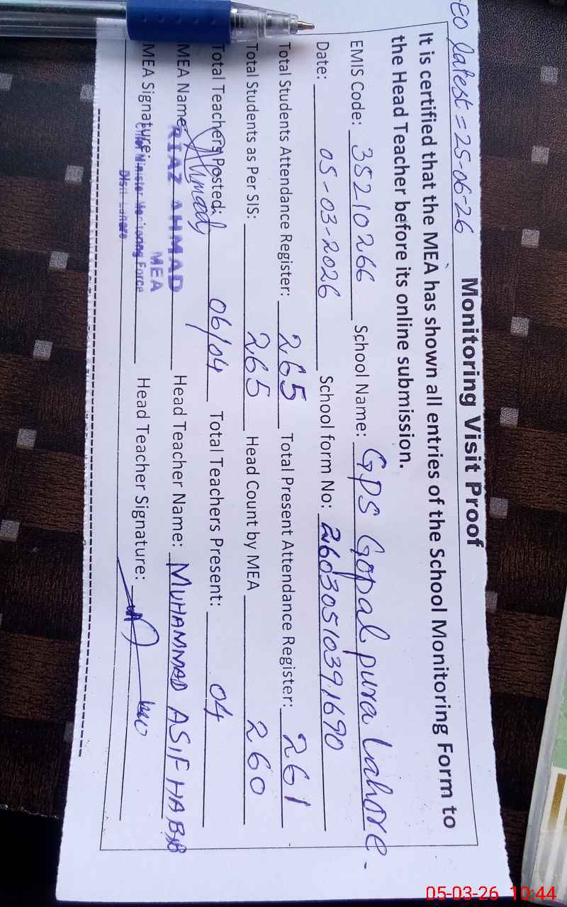 | EMIS Code: 35210266 | Name of School: GPS GOPAL PURA | |||