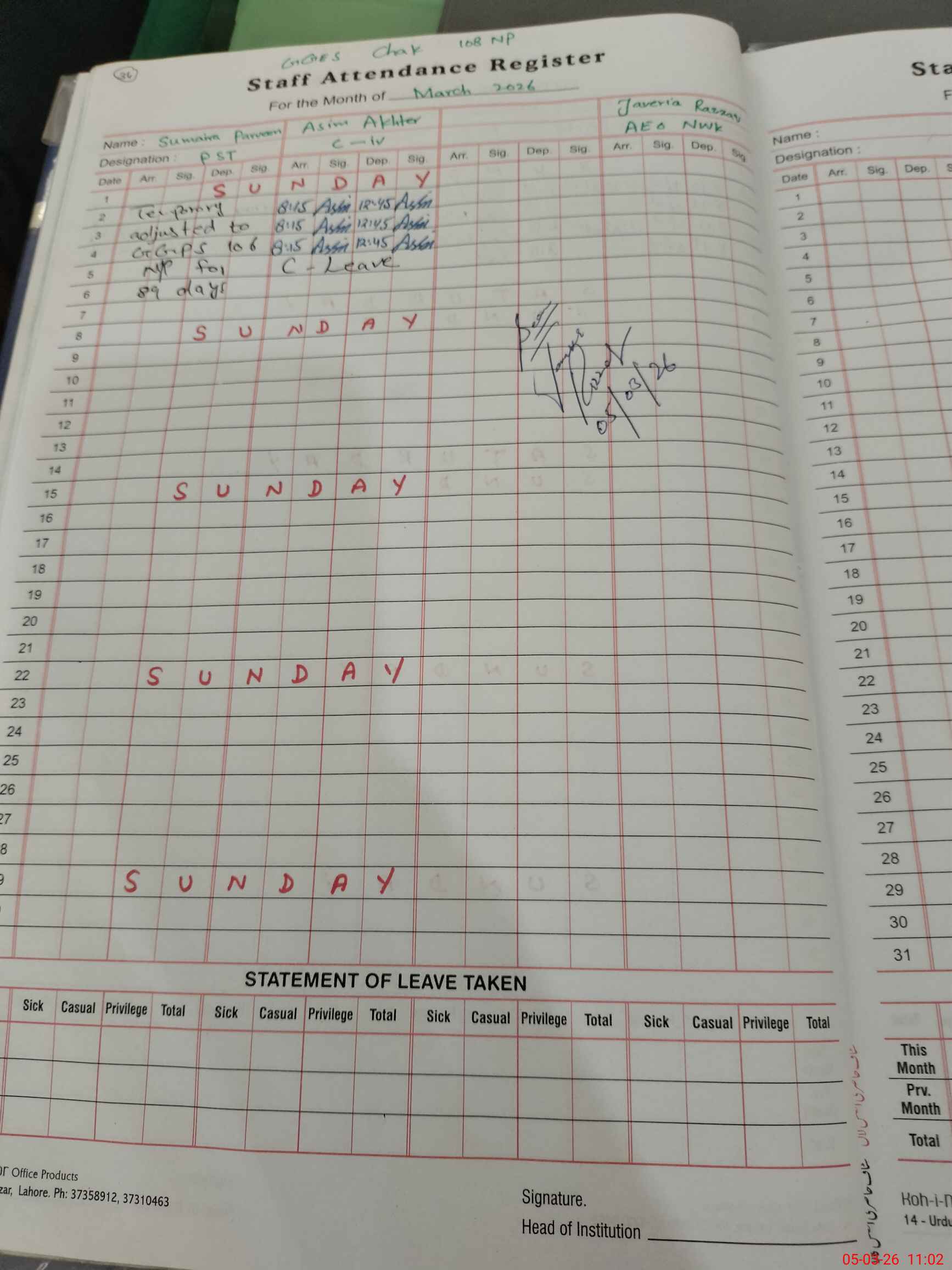 | Leave | Duty | Absent | Maternity | Medical | Ex- Pak |