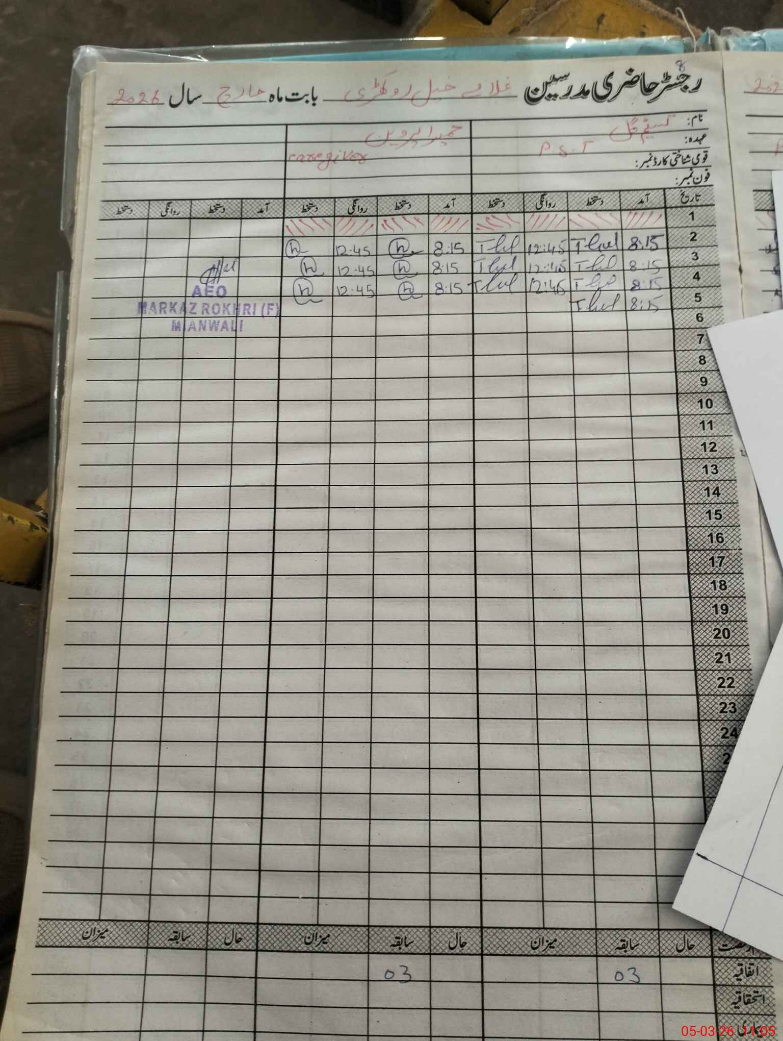 | District: MIANWALI | Tehsil: MIANWALI | Markaz: ROKHRI-FEMALE | Level: Primary | |