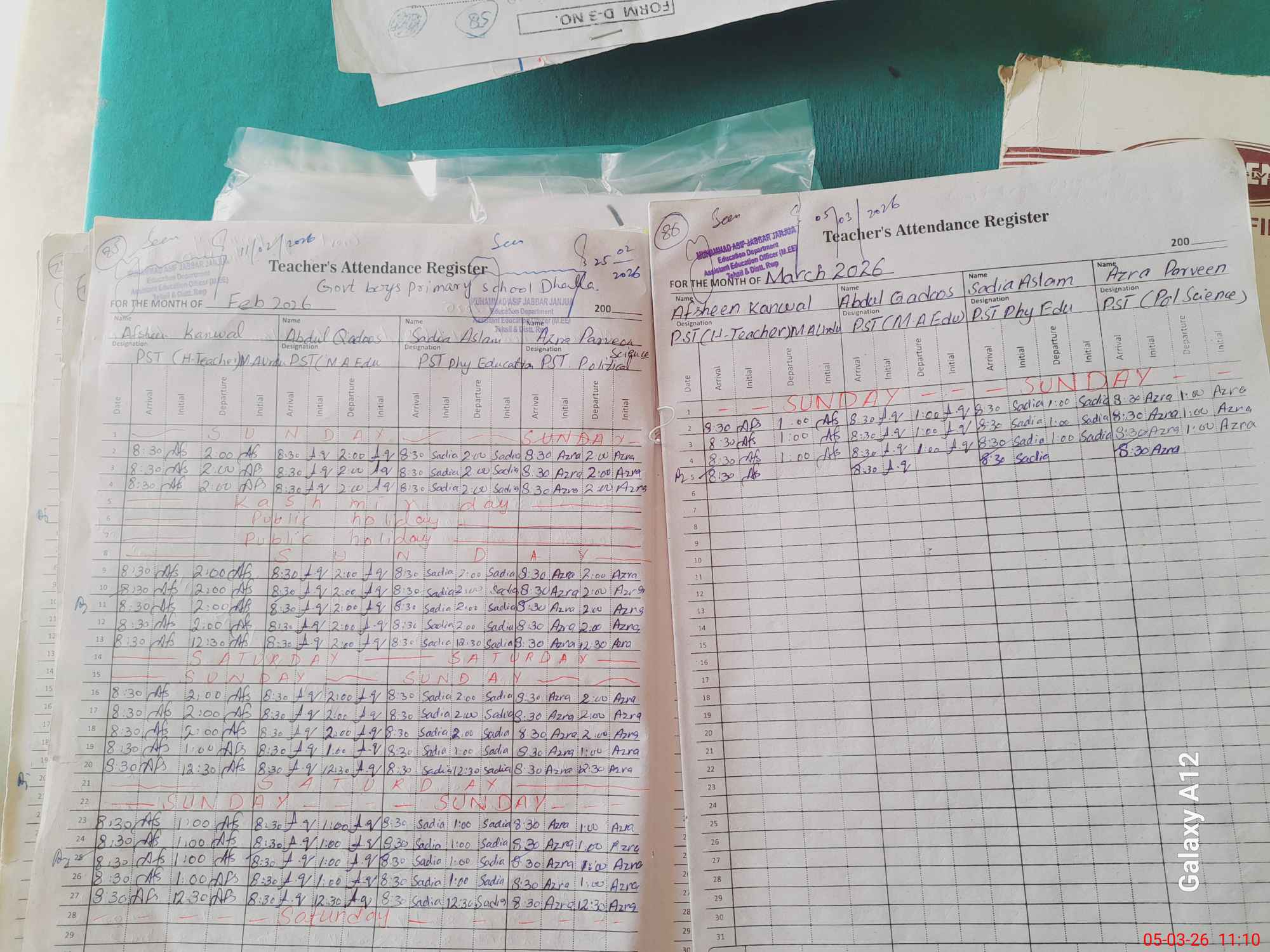 | Name: AF**** KA**** Designation: (School Headmaster's/Headmistress's) PST Phone/Cell Number: 03**** |