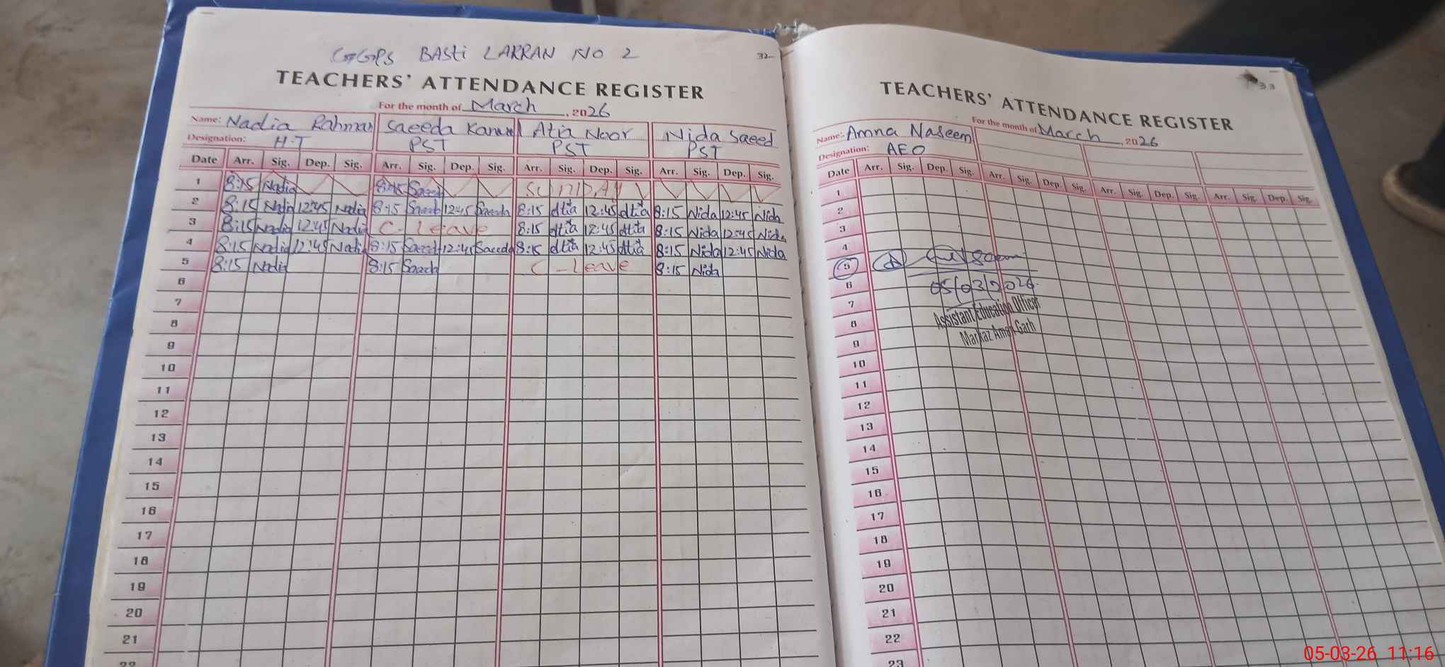 | Name: Na**** Re**** Designation: (School Headmaster's/Headmistress's) PST/PTC/JV Phone/Cell Number: 03**** |