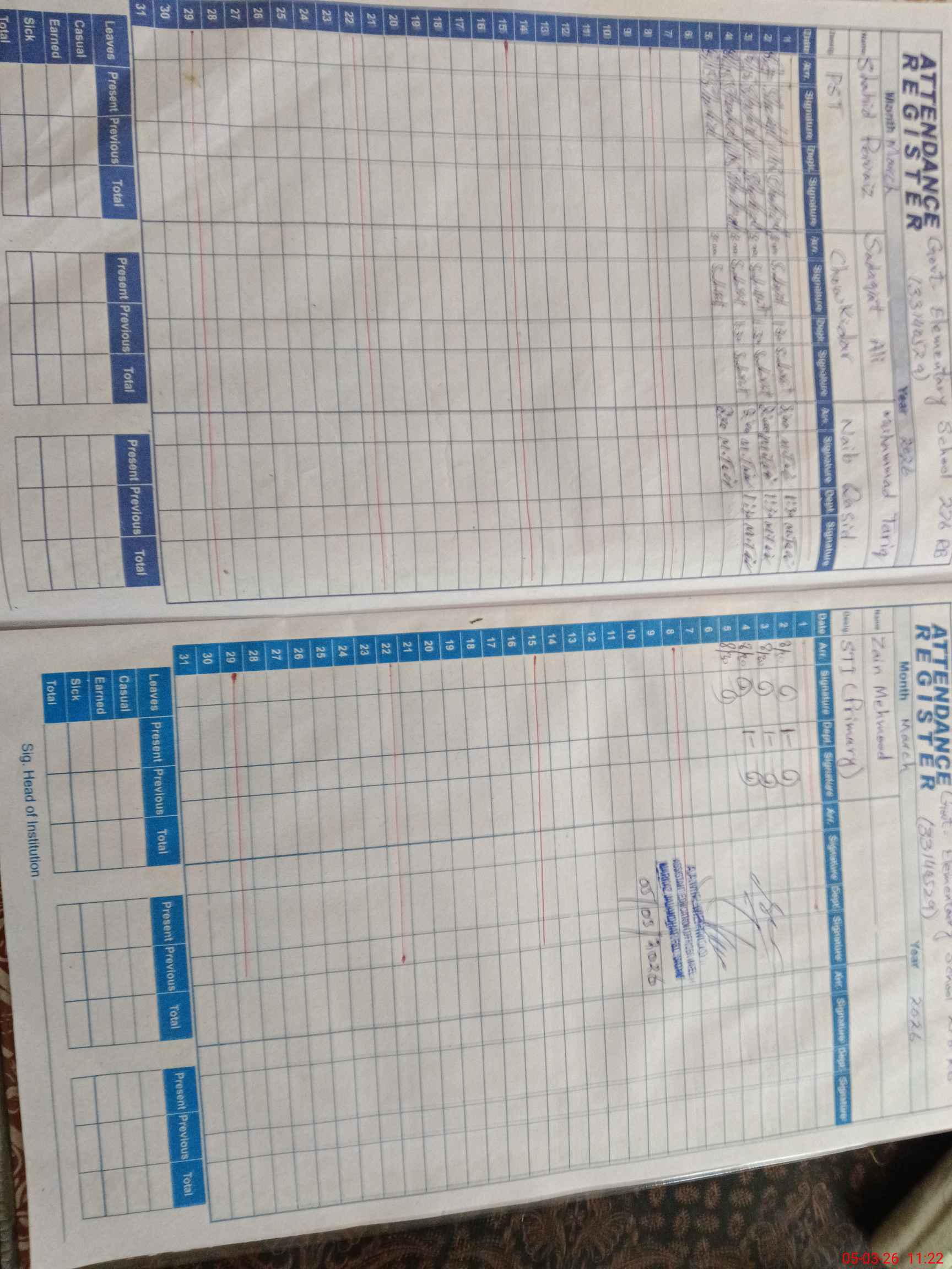 | Name: Pe**** Iq**** Designation: (School Headmaster's/Headmistress's) EST Phone/Cell Number: 03**** |