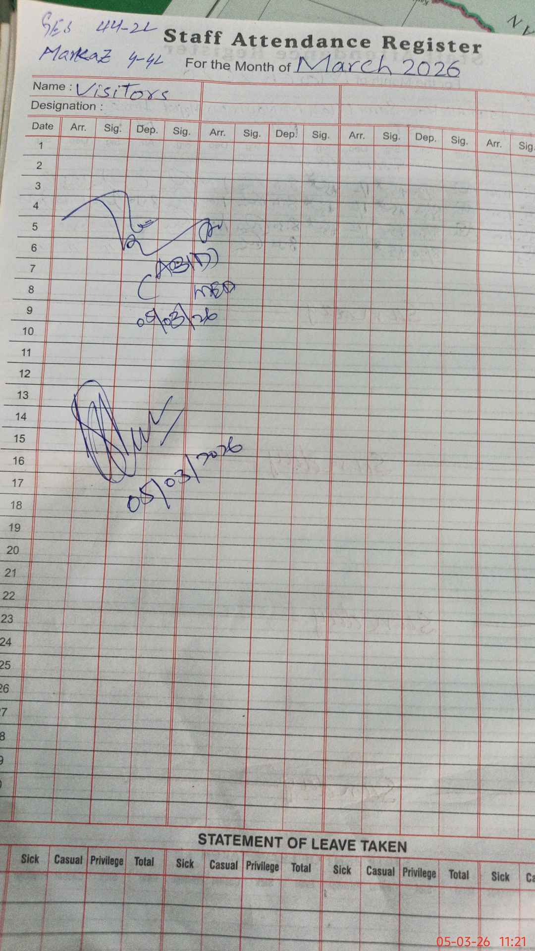 | Sr.No. | Visit Date | Designation | ||