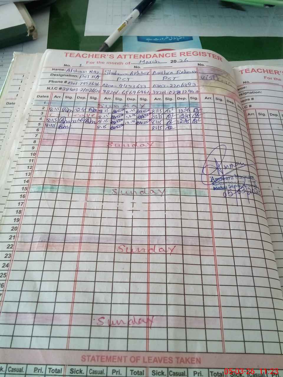 | Name: Af**** Na**** Designation: (School Headmaster's/Headmistress's) PST Phone/Cell Number: 03**** |