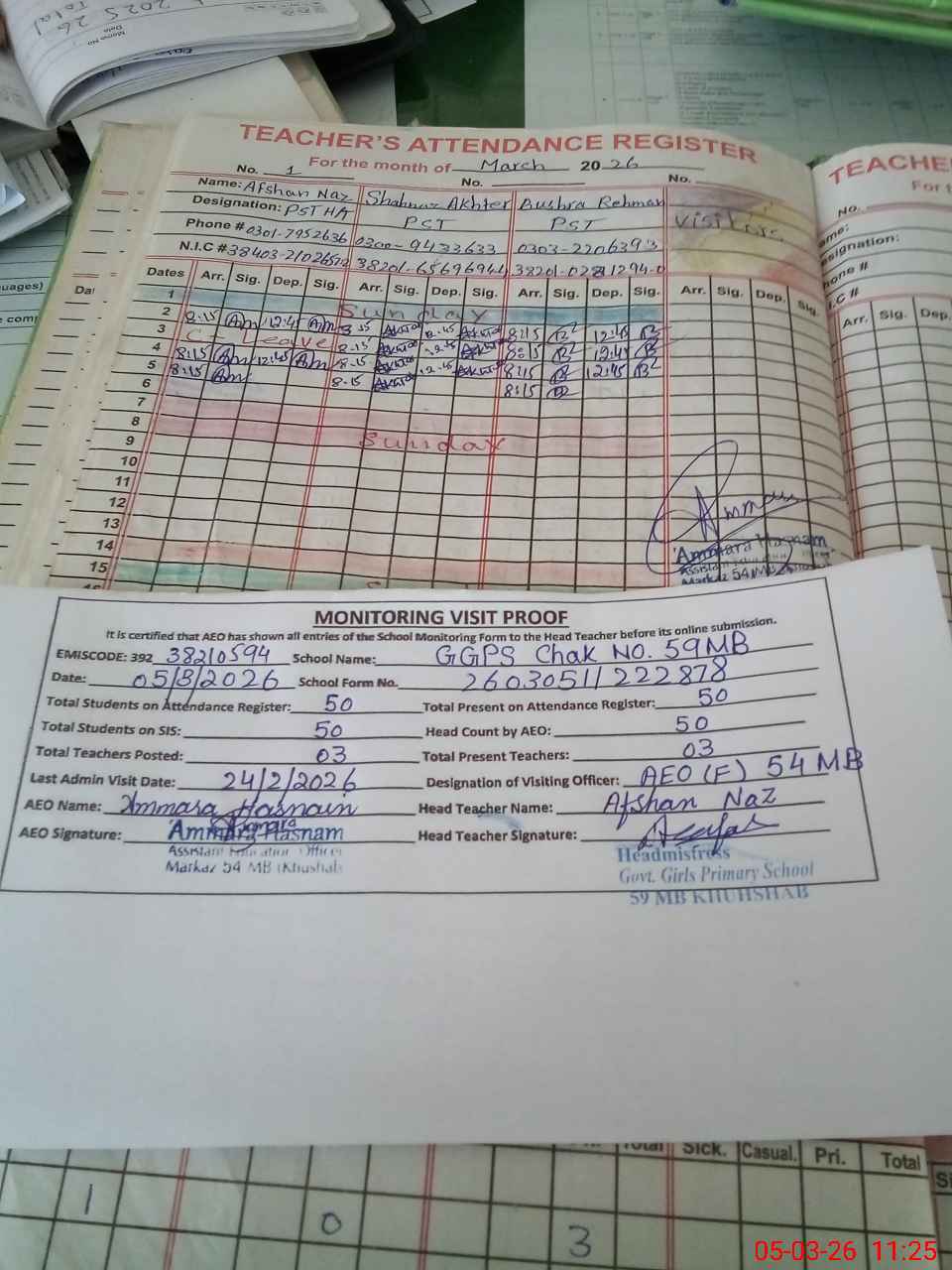| Attendance Register | Head Teacher | MEA with School | Visit Proof |