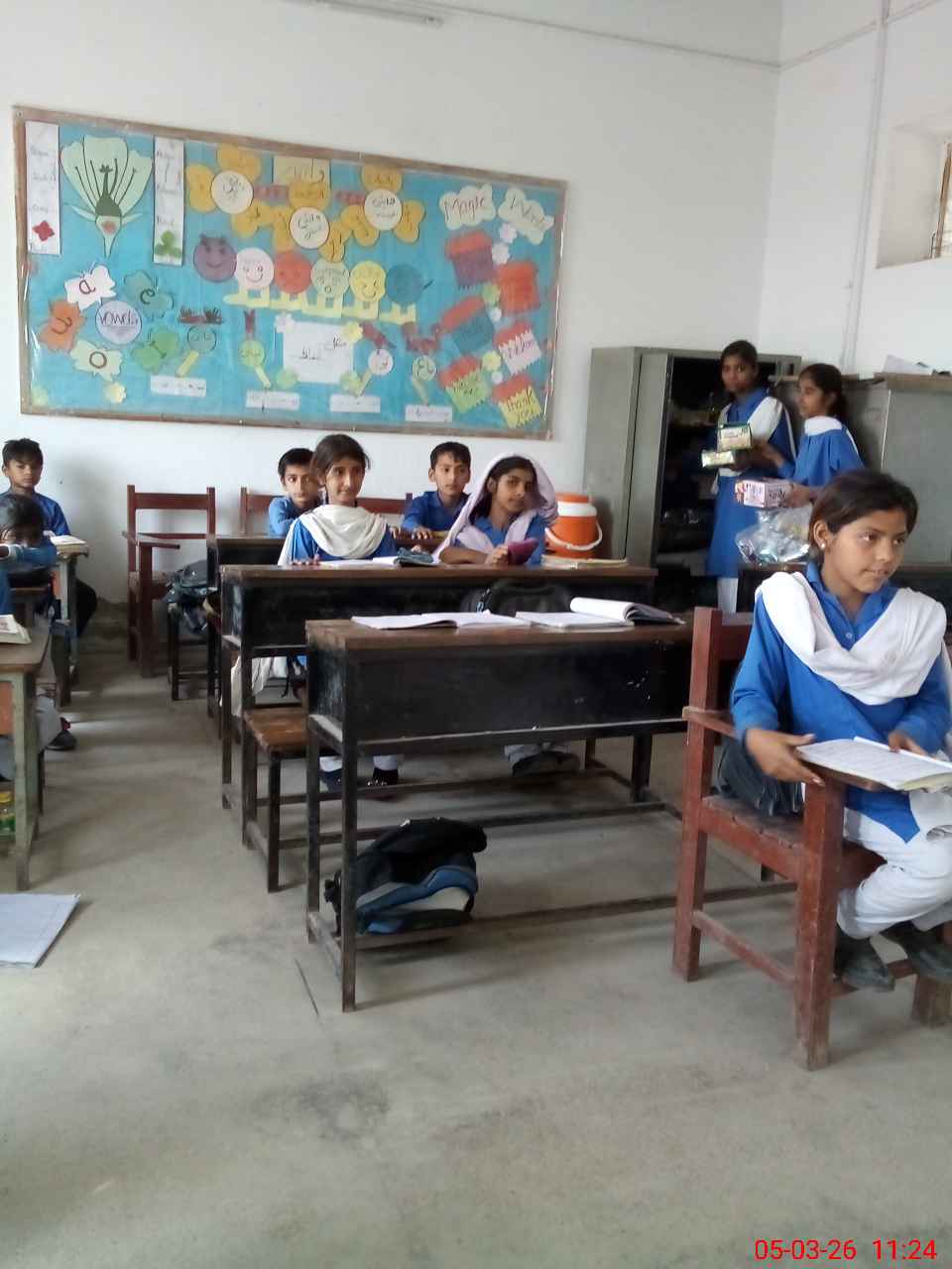| Total no. of Classrooms: 2 No. of Classrooms Used for Teaching: 2 No. of Classrooms Storing Old Furniture, FTBs, etc: 0Comments if Any: Boundary wall is partially dangerous |