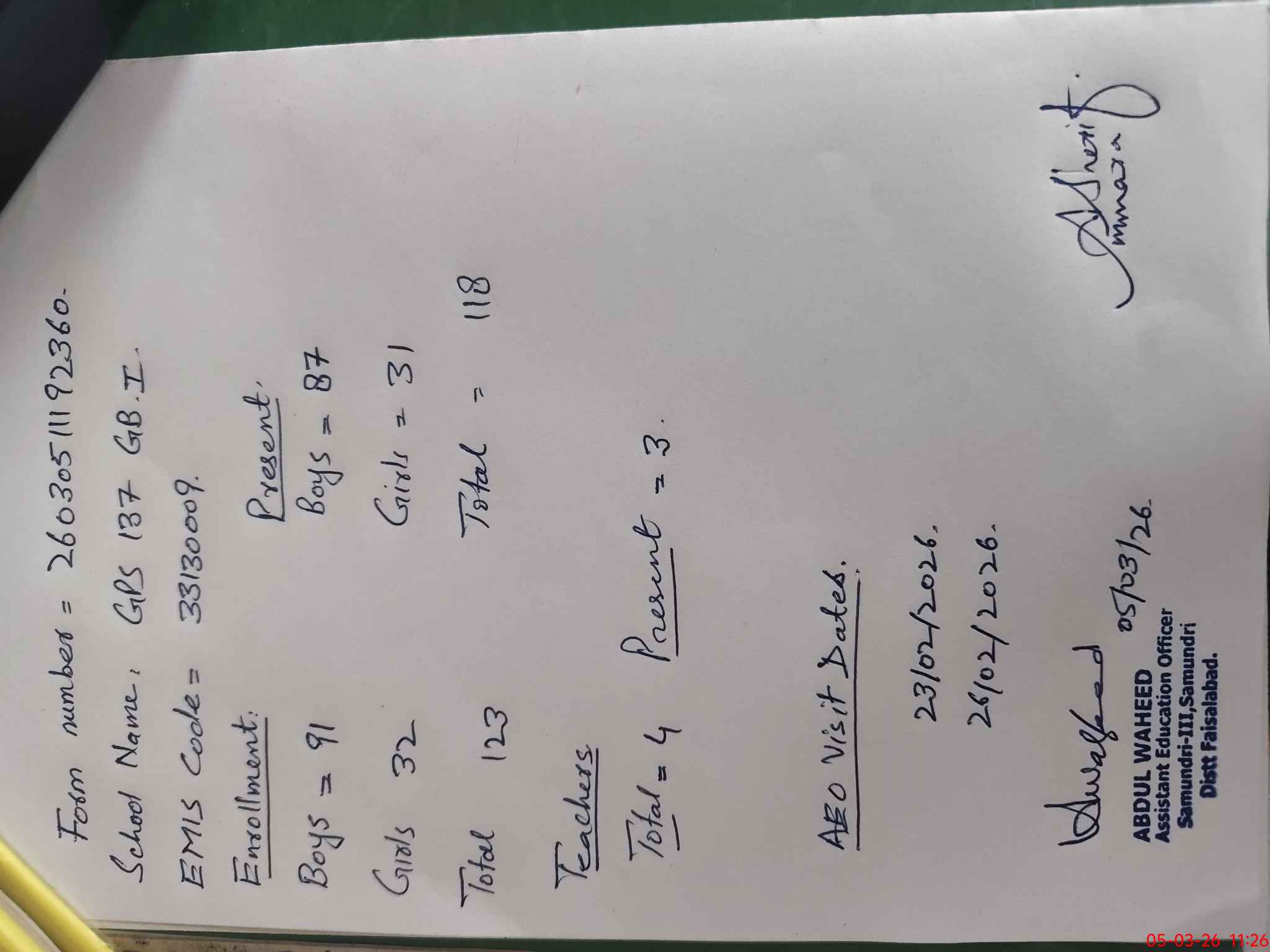 | EMIS Code: 33130009 | Name of School: GPS CHAK 137 GB I SAMUNDRI | |||